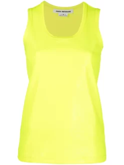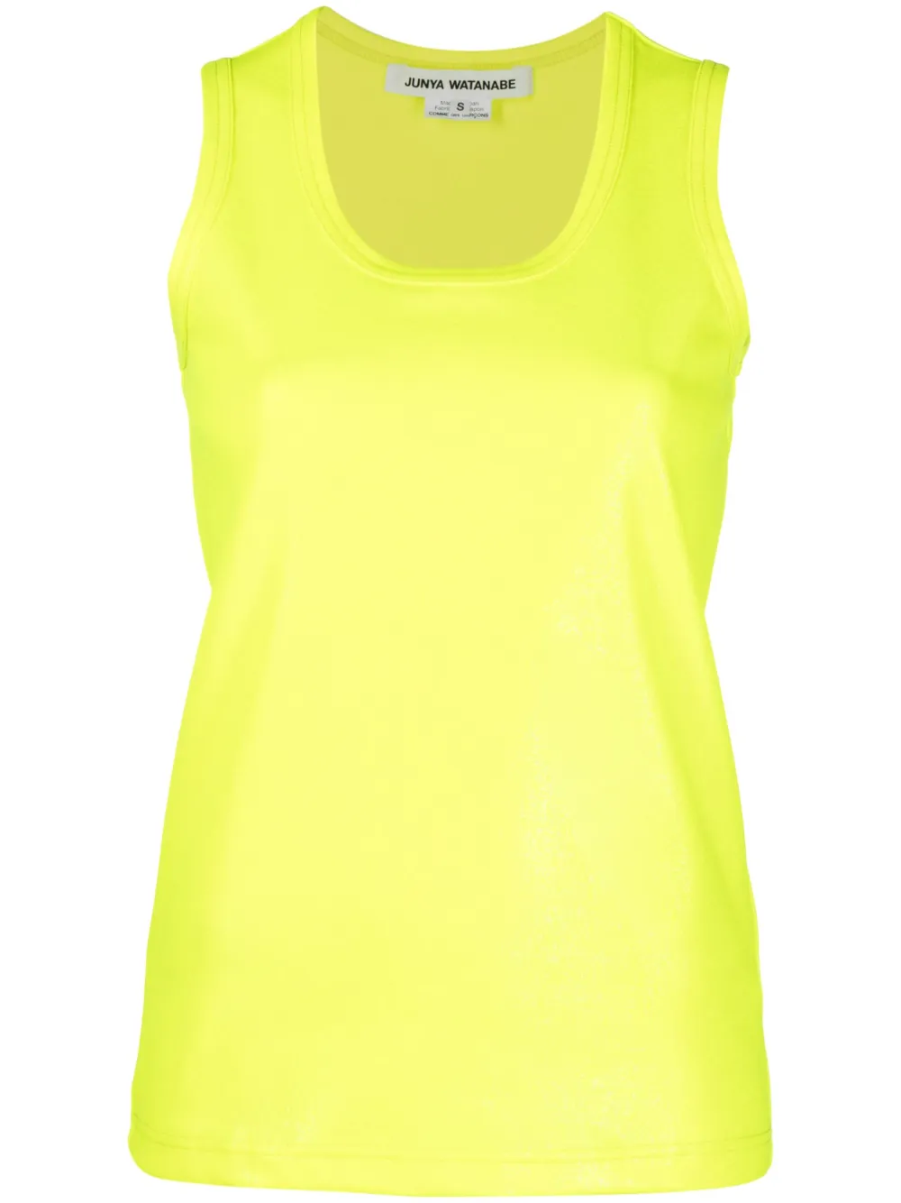 Giallo fluorescente, pelle cruelty-free e senza maniche.