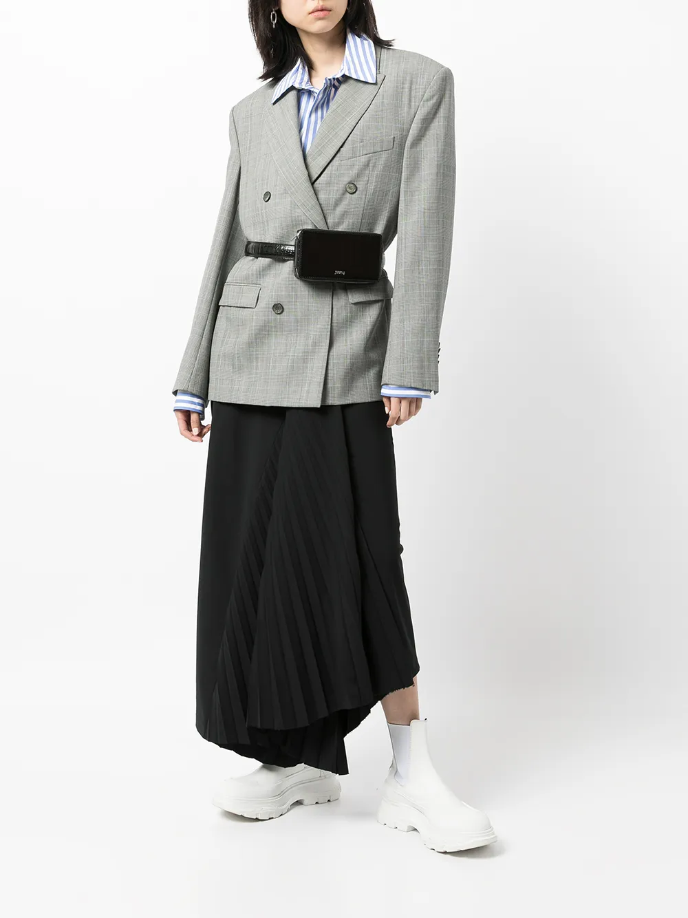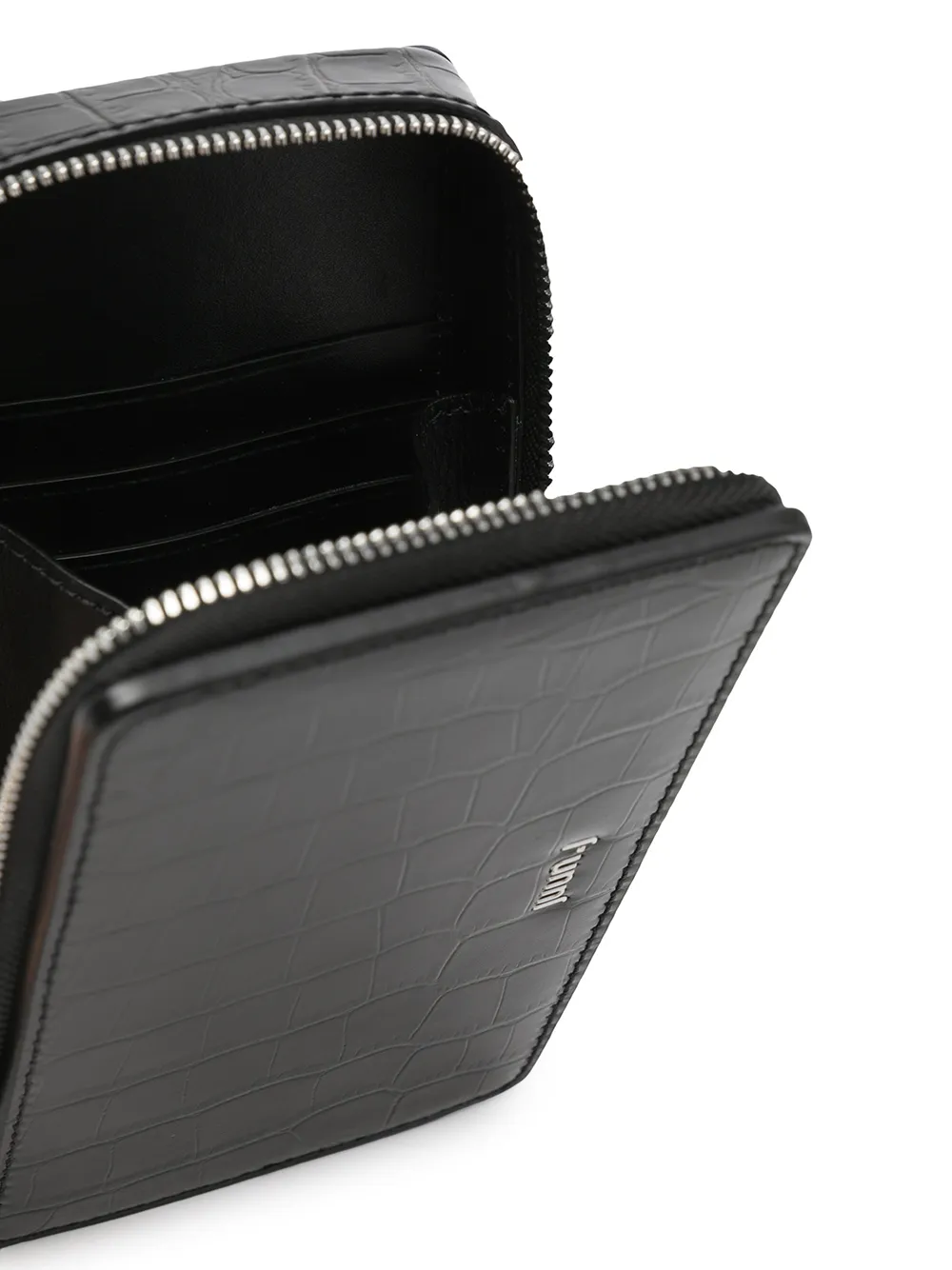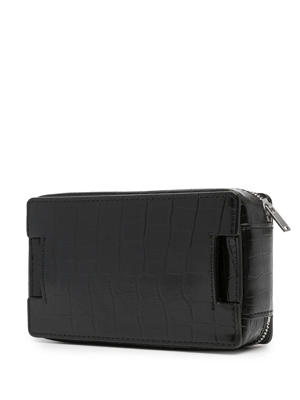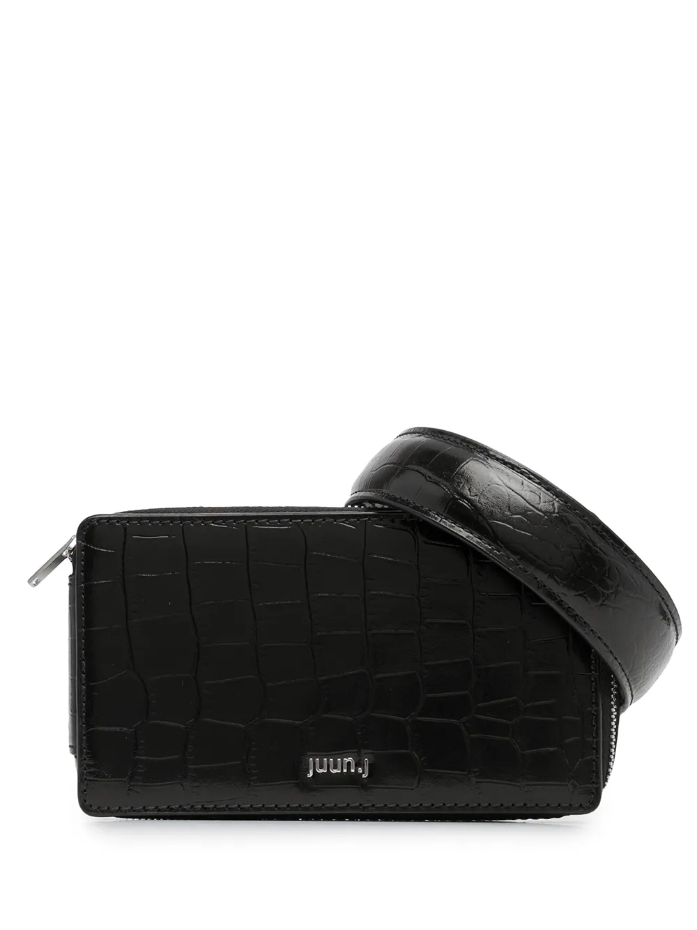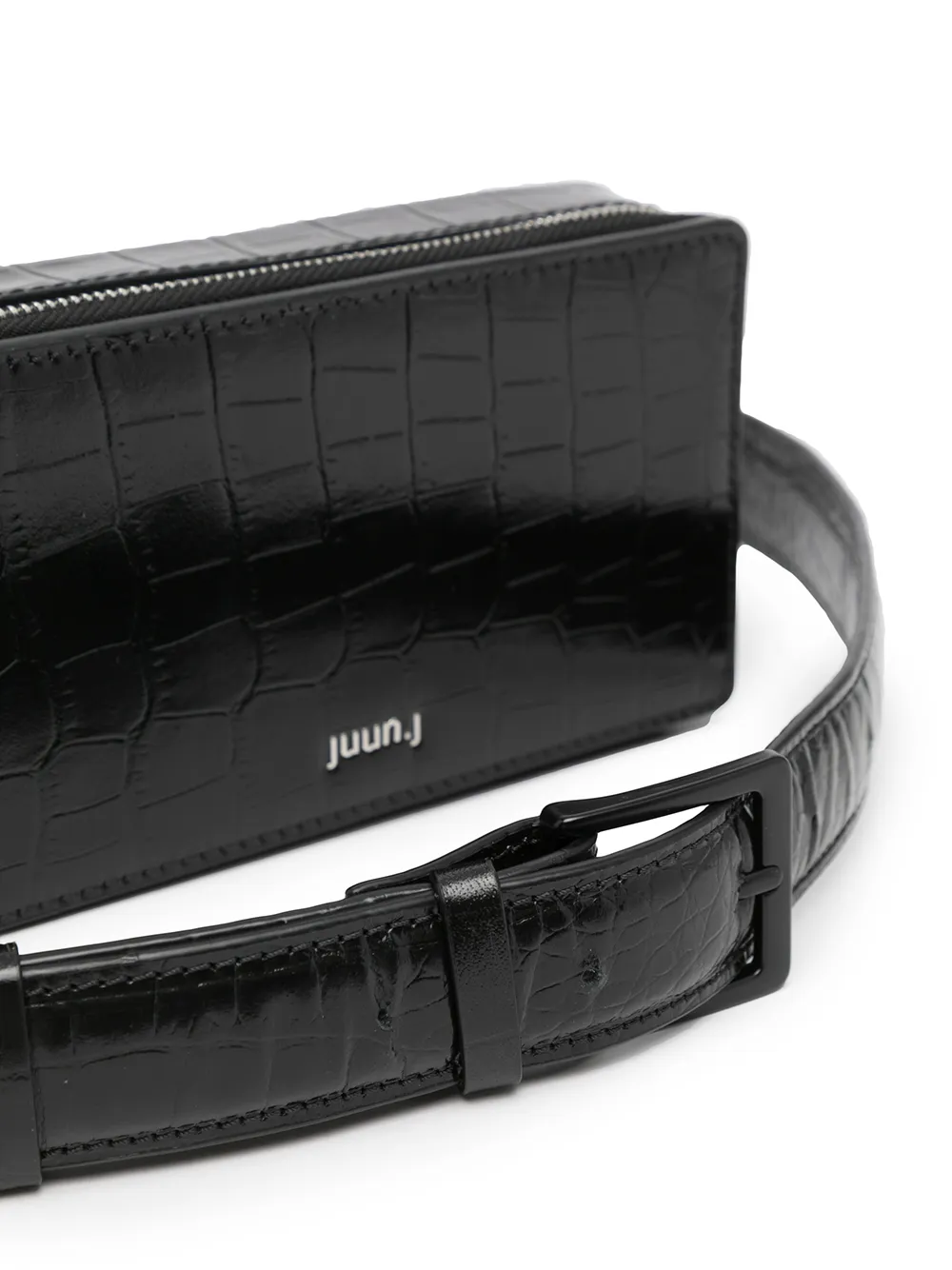 Effetto pelle di coccodrillo, logo goffrato nella parte anteriore, fascia in vita regolabile e chiusura con zip a giro. Colore: nero.