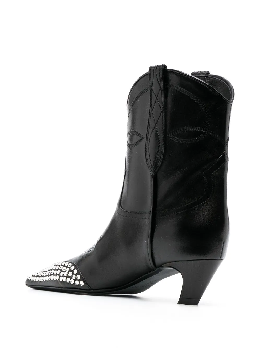 Decorazione in cristalli, design ricamato, chiusura con doppia linguetta, altezza alla caviglia, design a punta e tacco basso.