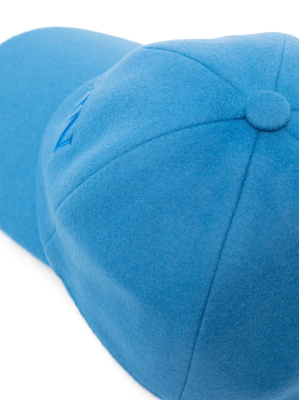 logo-embroidered wool-cashmere cap from Lanvin featuring embroidered logo to the front, six-panel construction, curved peak, blue and wool-cashmere blend.