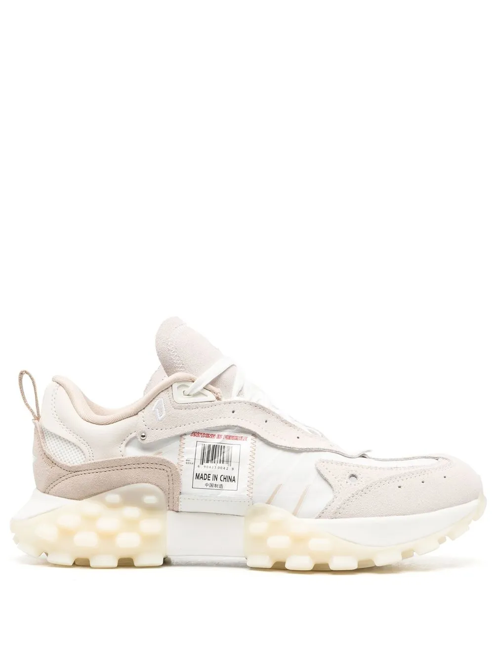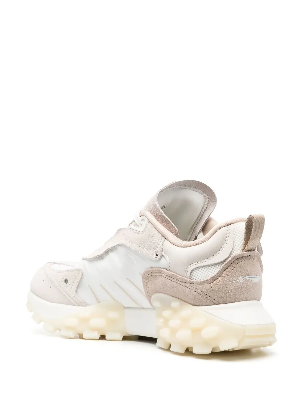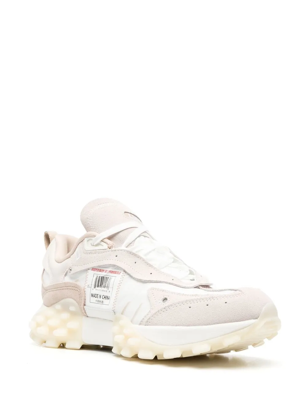Bianco, beige, pelle di vitello, design a inserti, chiusura frontale con lacci, punta tonda e suola chunky in gomma. Gli articoli unisex utilizzano taglie da uomo.