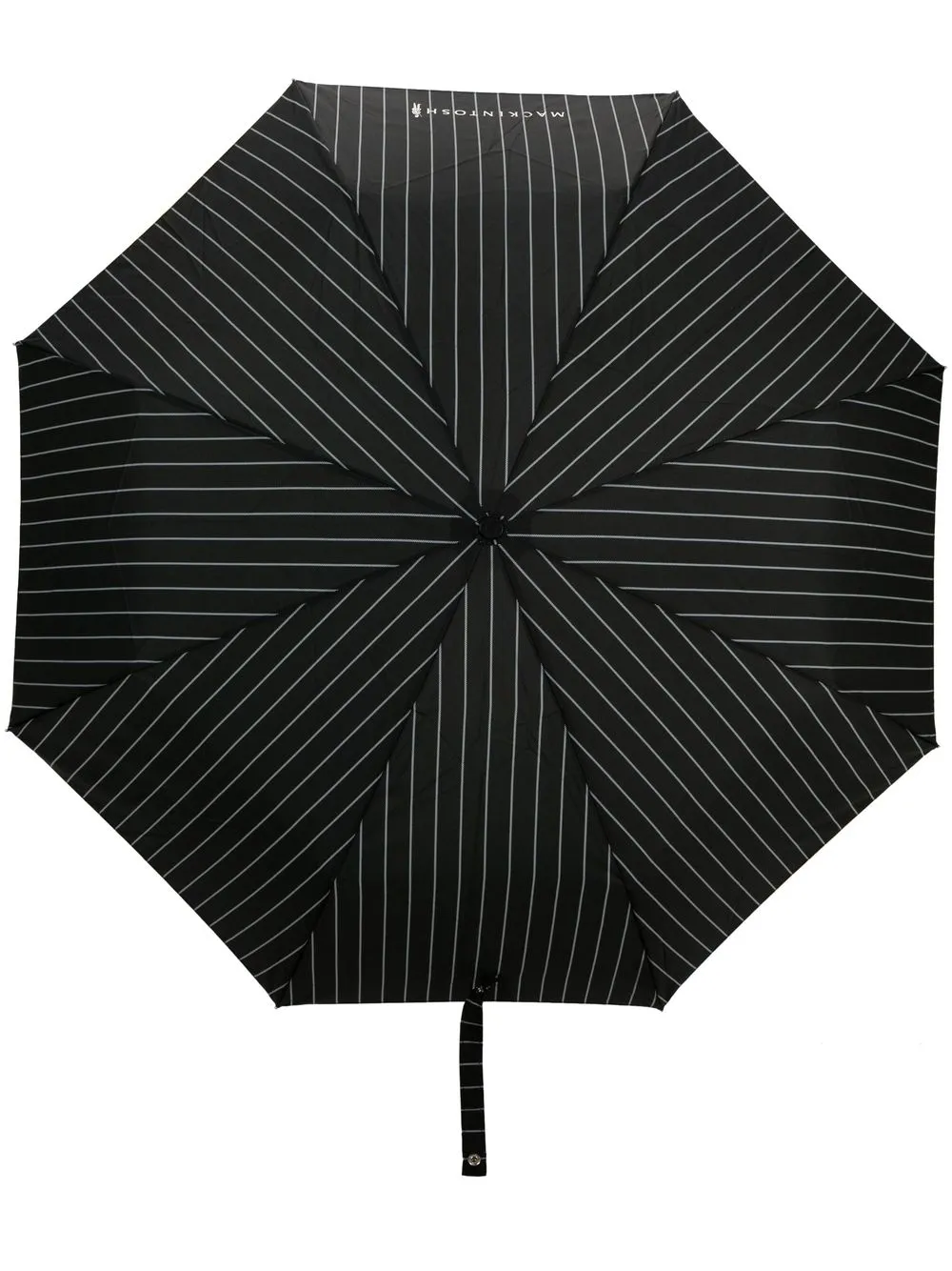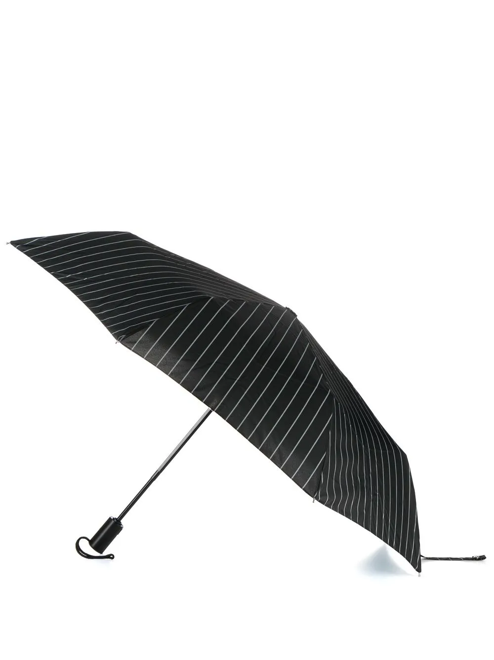 Nero/bianco, stampa laterale con logo, stampa a righe, movimento automatico, manico telescopico, chiusura con bottoni a pressione e struttura con otto pannelli.