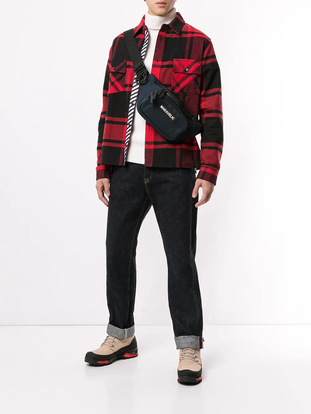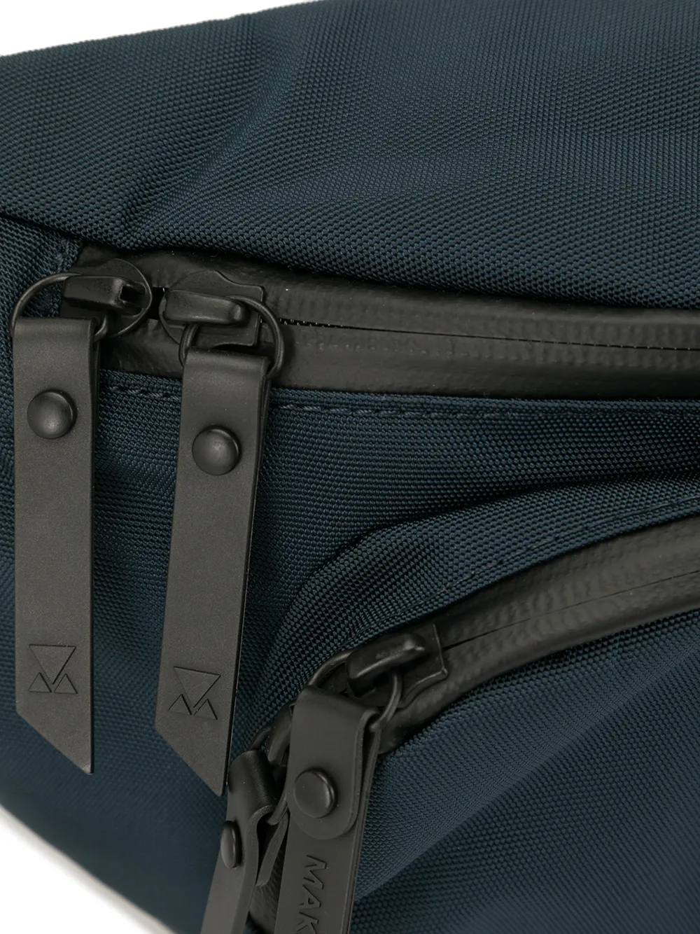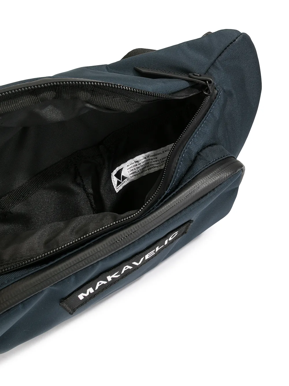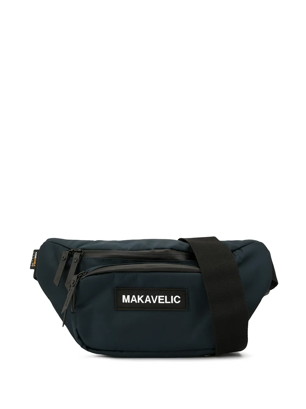Marsupio con applicazione di MAKAVELIC. Modello con tracolla regolabile, chiusura con doppia zip, scomparto interno unico, scomparto esterno con zip, chiusura posteriore con zip e applicazione frontale con logo.