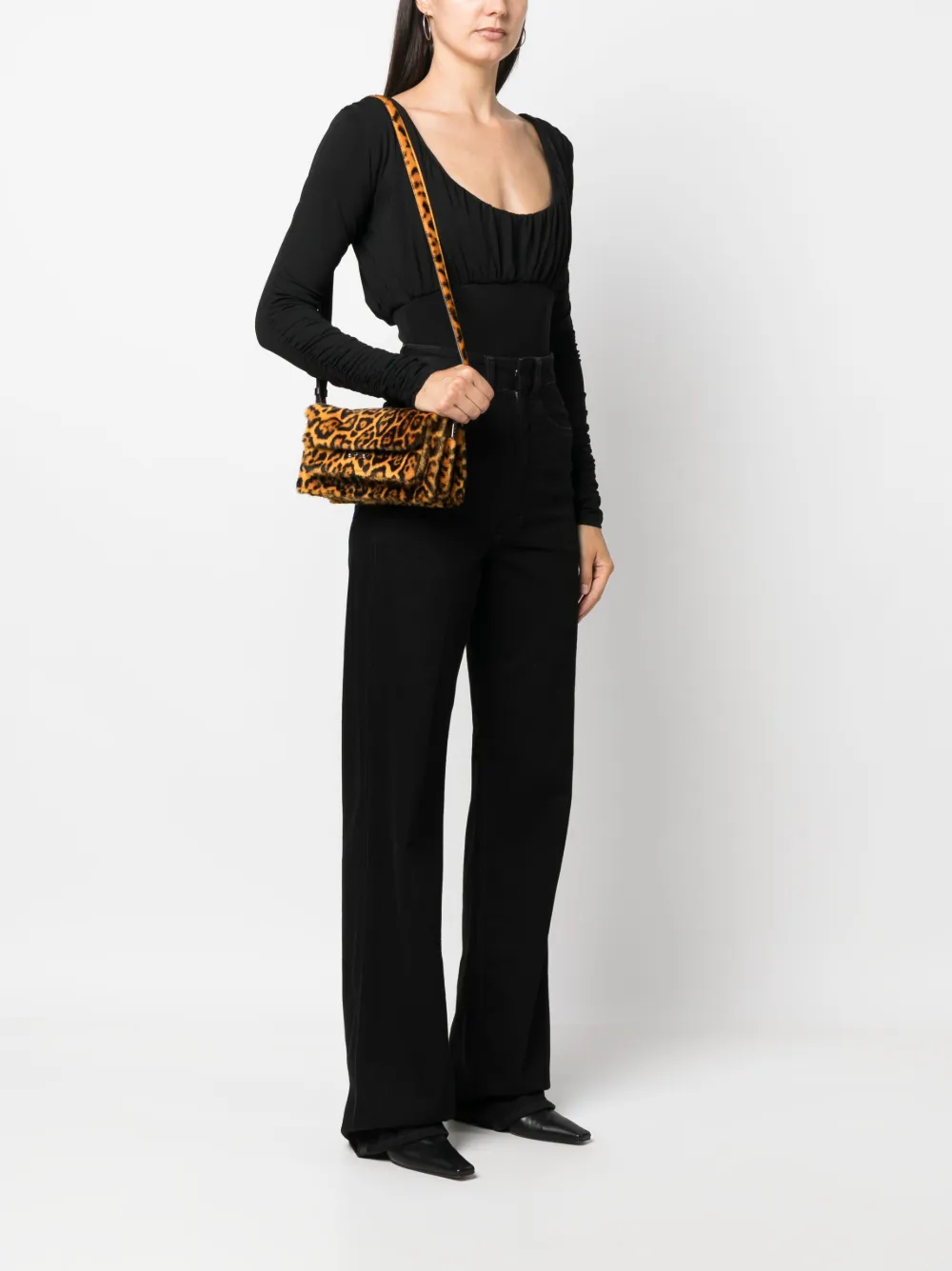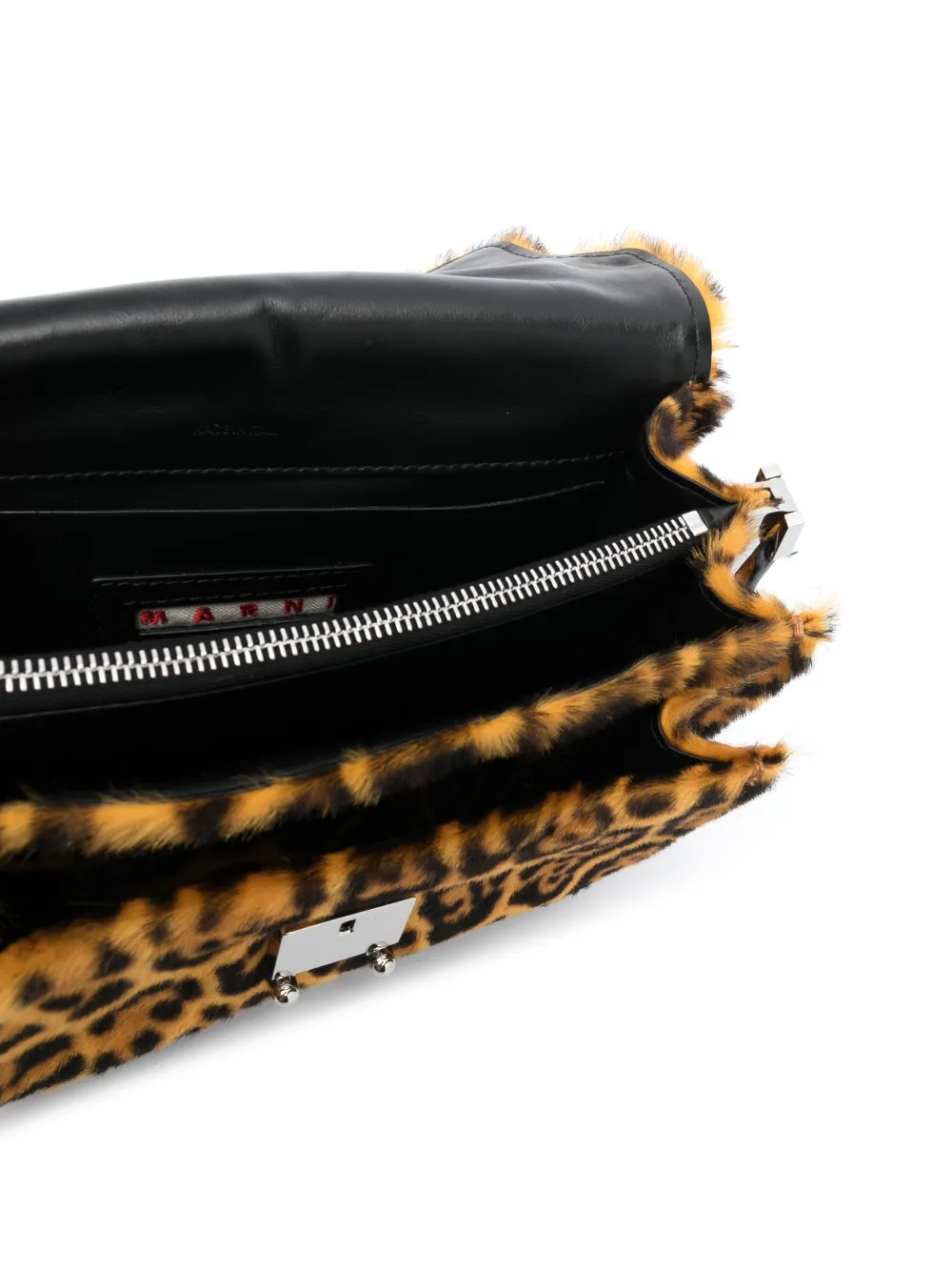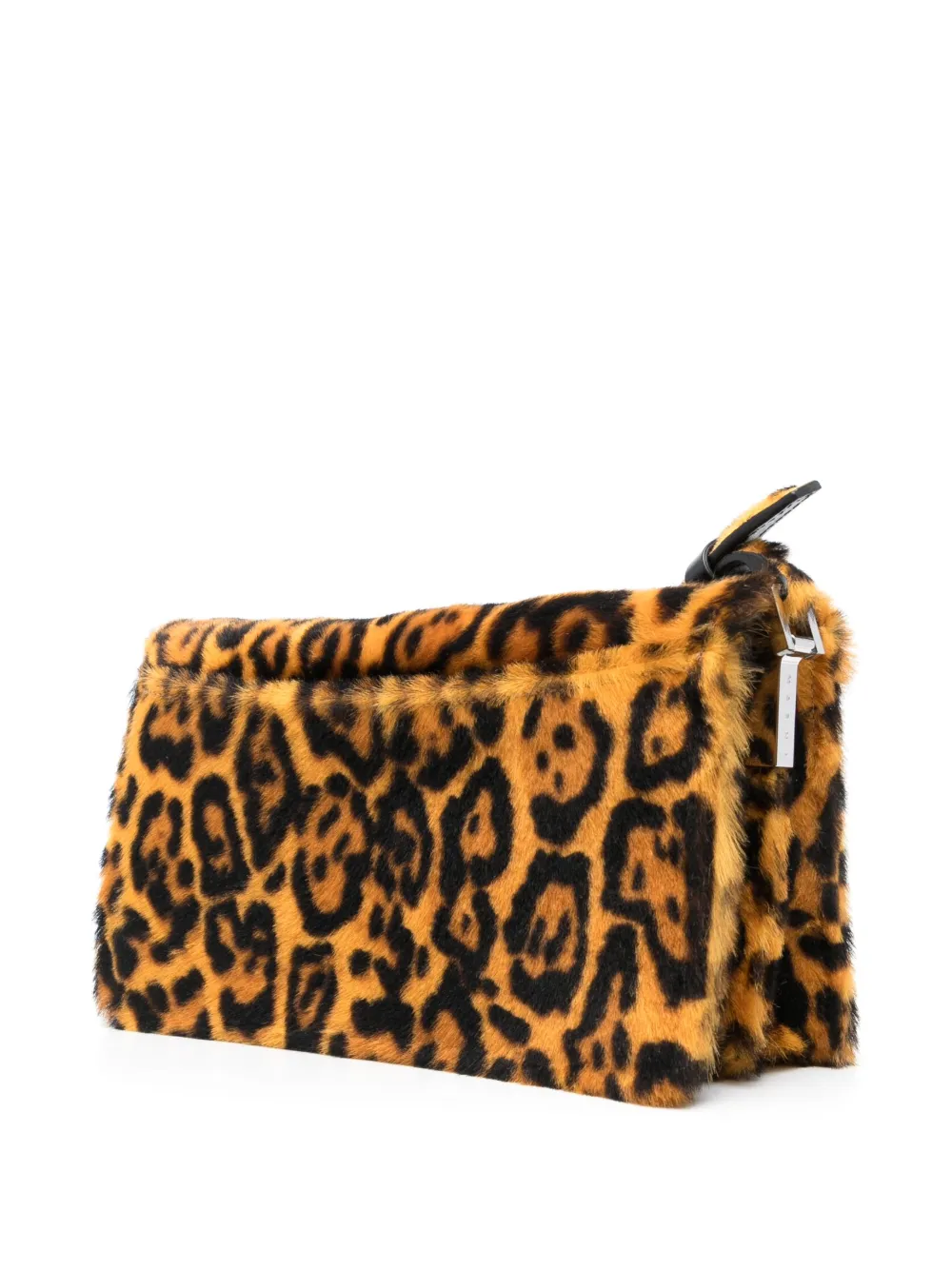 Arancione, nero, lana di agnello, stampa leopardata, componenti metalliche color argento con logo inciso, tracolla regolabile, pattina nella parte superiore, chiusura con fermaglio, scomparto interno diviso, tasca interna con zip, tasca interna a soffietto e applicazione interna con logo. Proteggi i tuoi acquisti. Questo articolo è fornito con una borsa protettiva antipolvere.