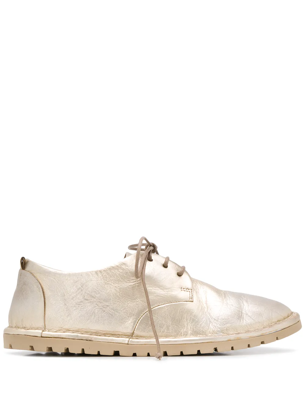 Stringate effetto metallizzato in pelle di Marsèll. Modello con effetto metallizzato, effetto stropicciato, punta tonda, chiusura con lacci, linguetta posteriore e suola in gomma antiscivolo.