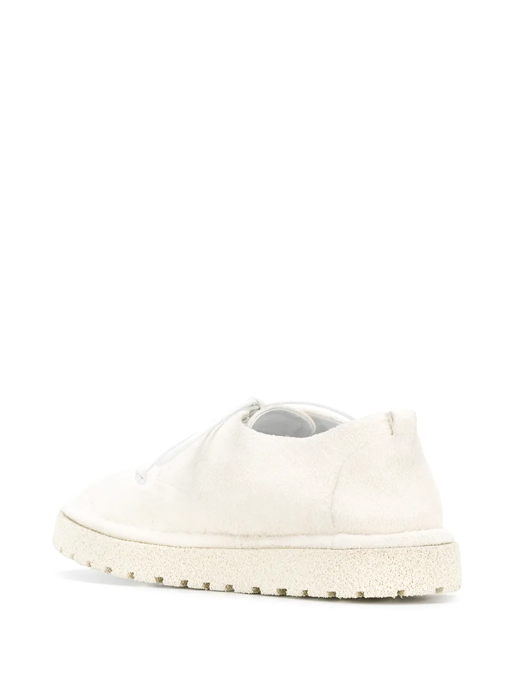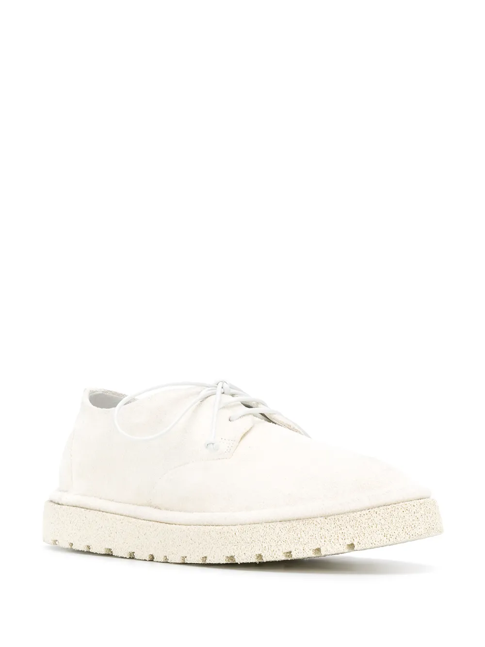 Stringate di colore bianco in pelle scamosciata di Marsèll. Modello con punta tonda, chiusura con lacci, soletta con logo, suola antiscivolo e pannelli cuciti.