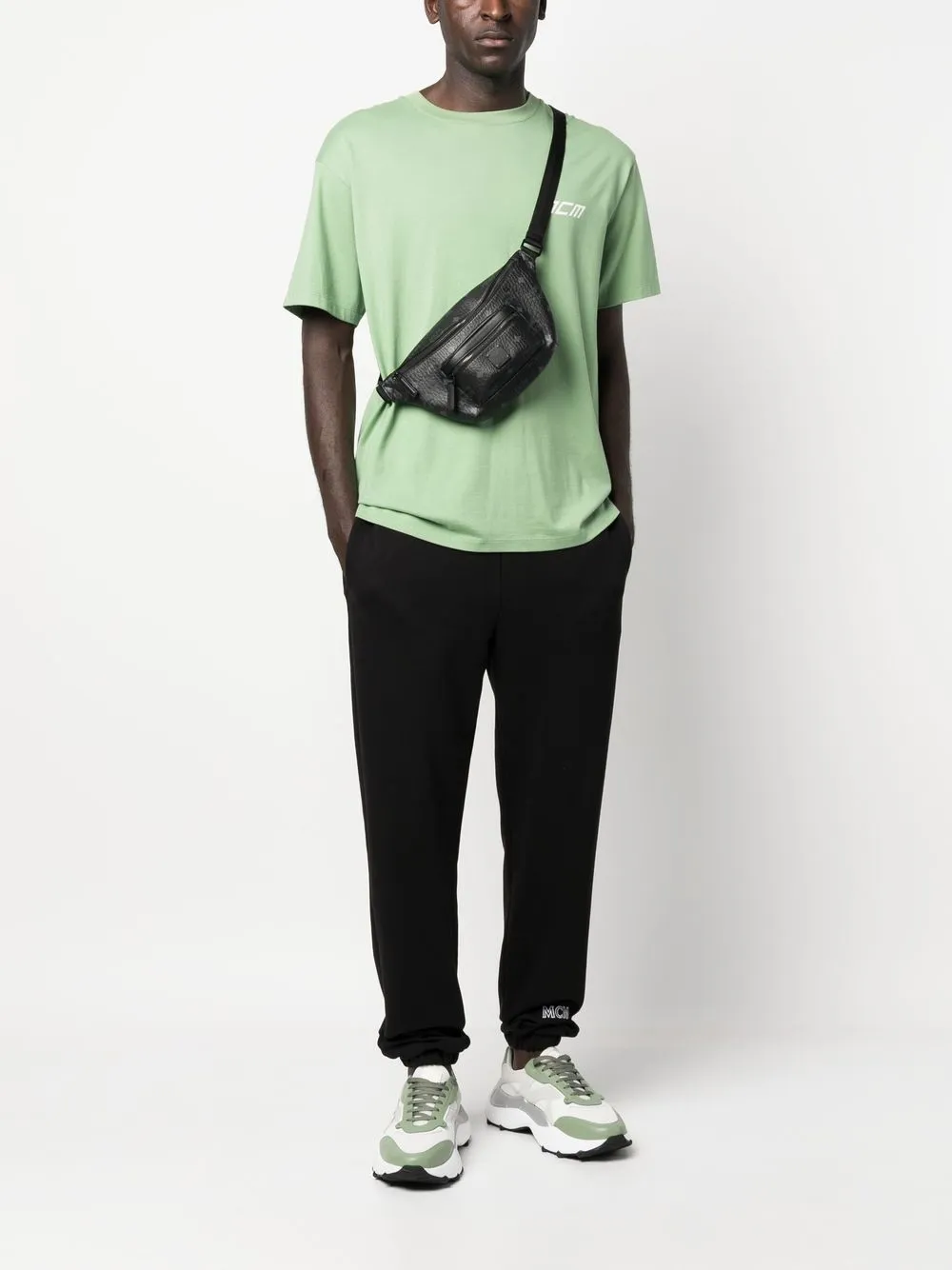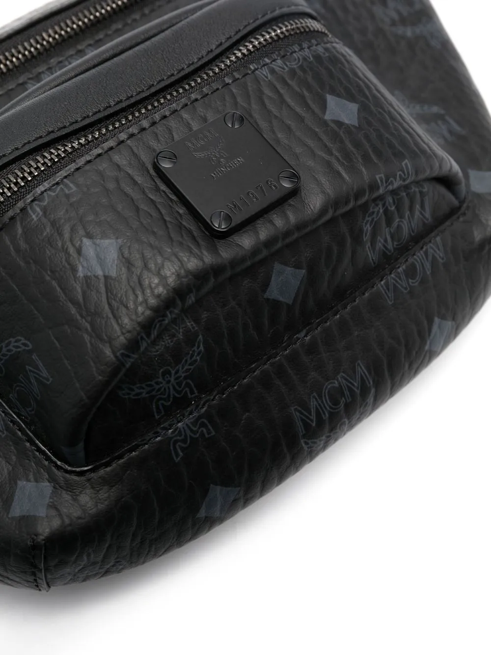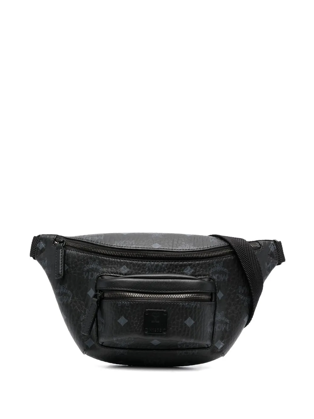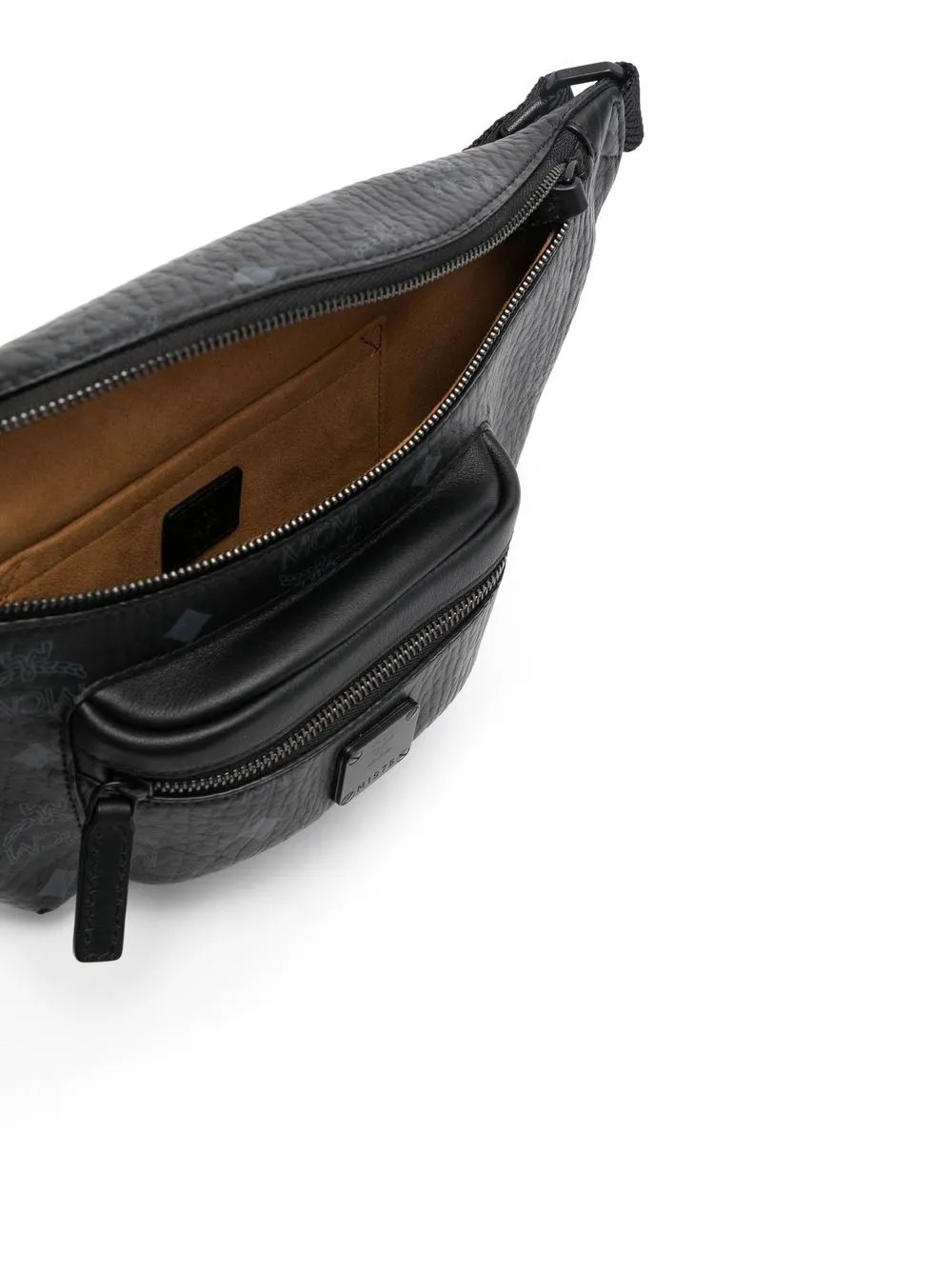 Motivo con monogramma, chiusura superiore con zip, tasca frontale con zip e fascia in vita regolabile.
