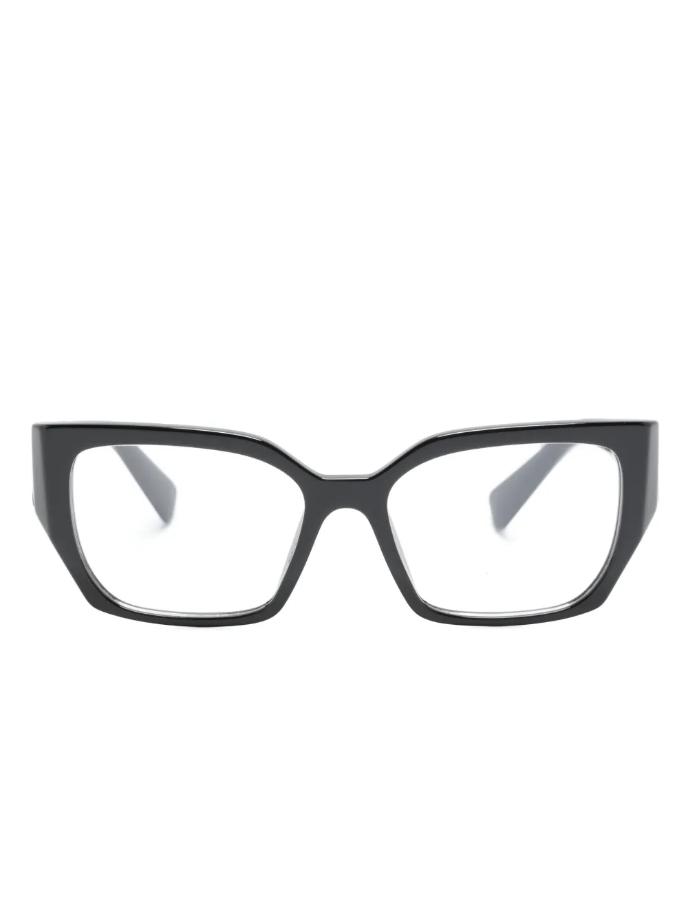 Nero, acetato, finitura lucida, montatura geometrica, aste dritte, logo laterale goffrato e aste con punta curva. Gli occhiali FARFETCH non sono venduti con lenti graduate. Questi occhiali sono forniti con una custodia protettiva.