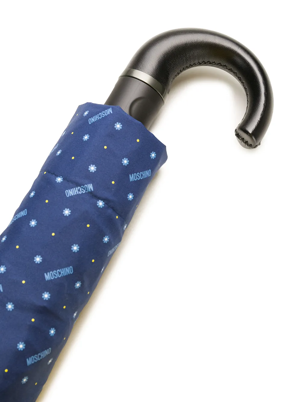 Ombrelli a fiori di colore blu di Moschino. Modello con manico curvo, stampa logo all-over e design strutturato. Questo articolo include una custodia protettiva.