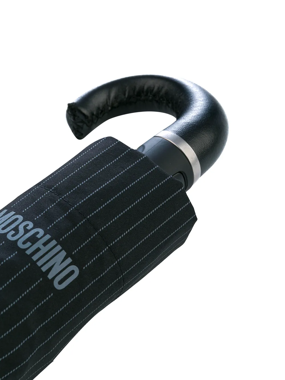 Ombrello con motivo gessato di colore nero di Moschino con manico curvo.