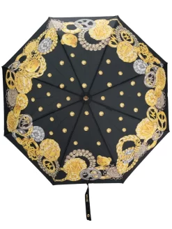 Nero, design a inserti, caratteristico motivo Teddy Bear, logo goffrato nella parte anteriore, stampa con logo sul davanti, stampa a macchie e dettagli color oro.