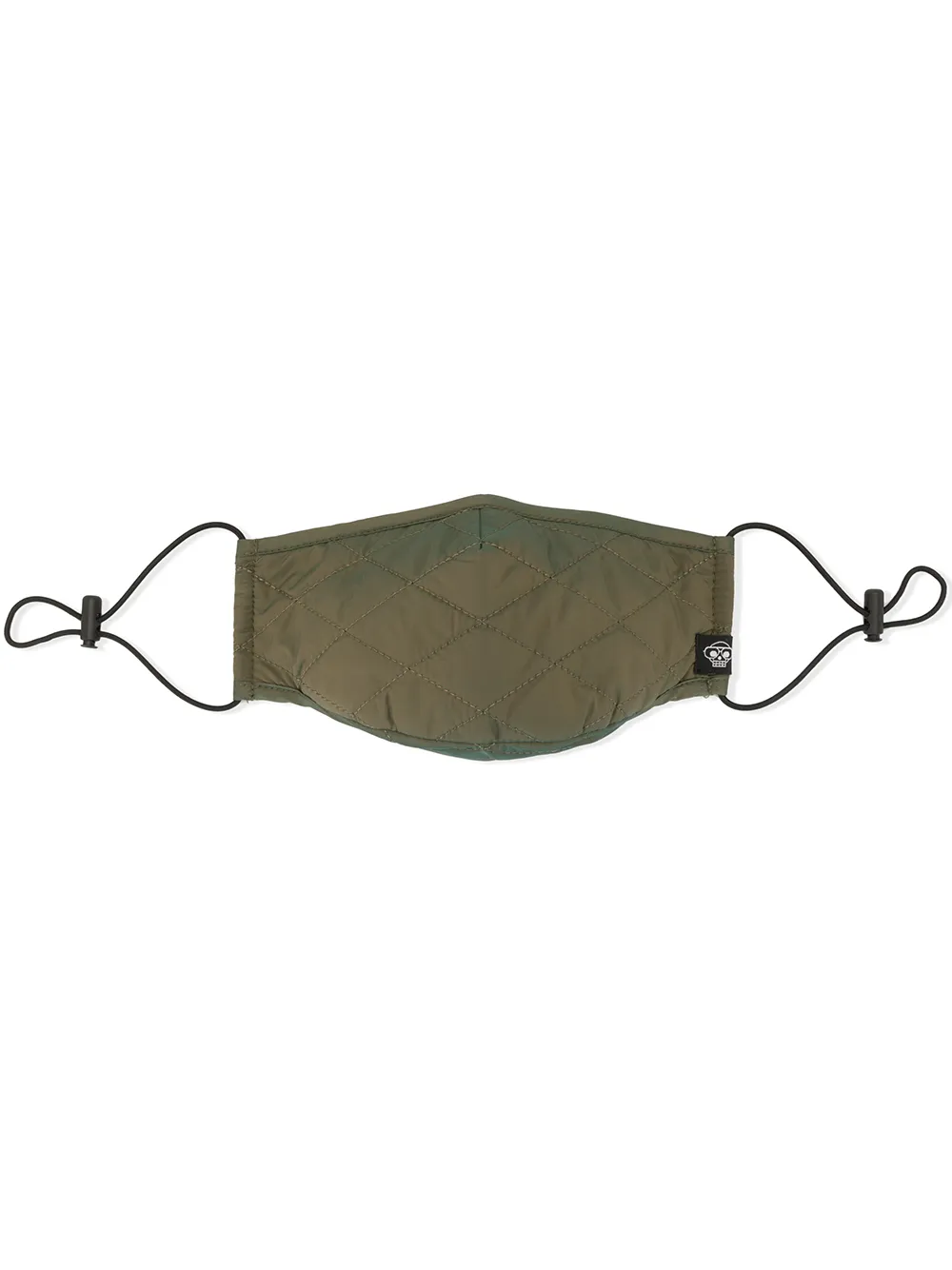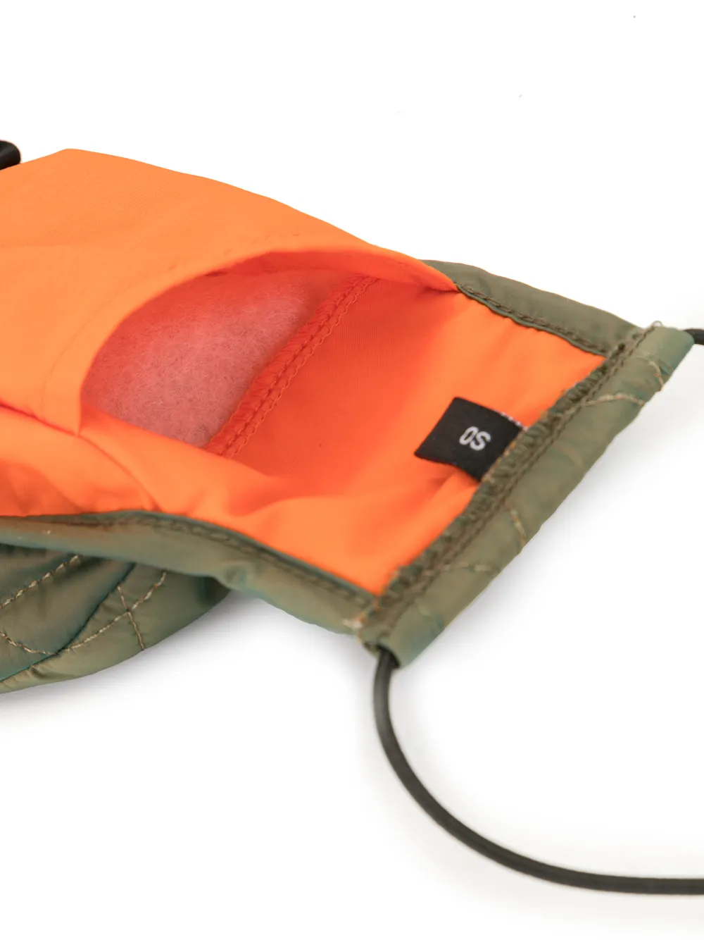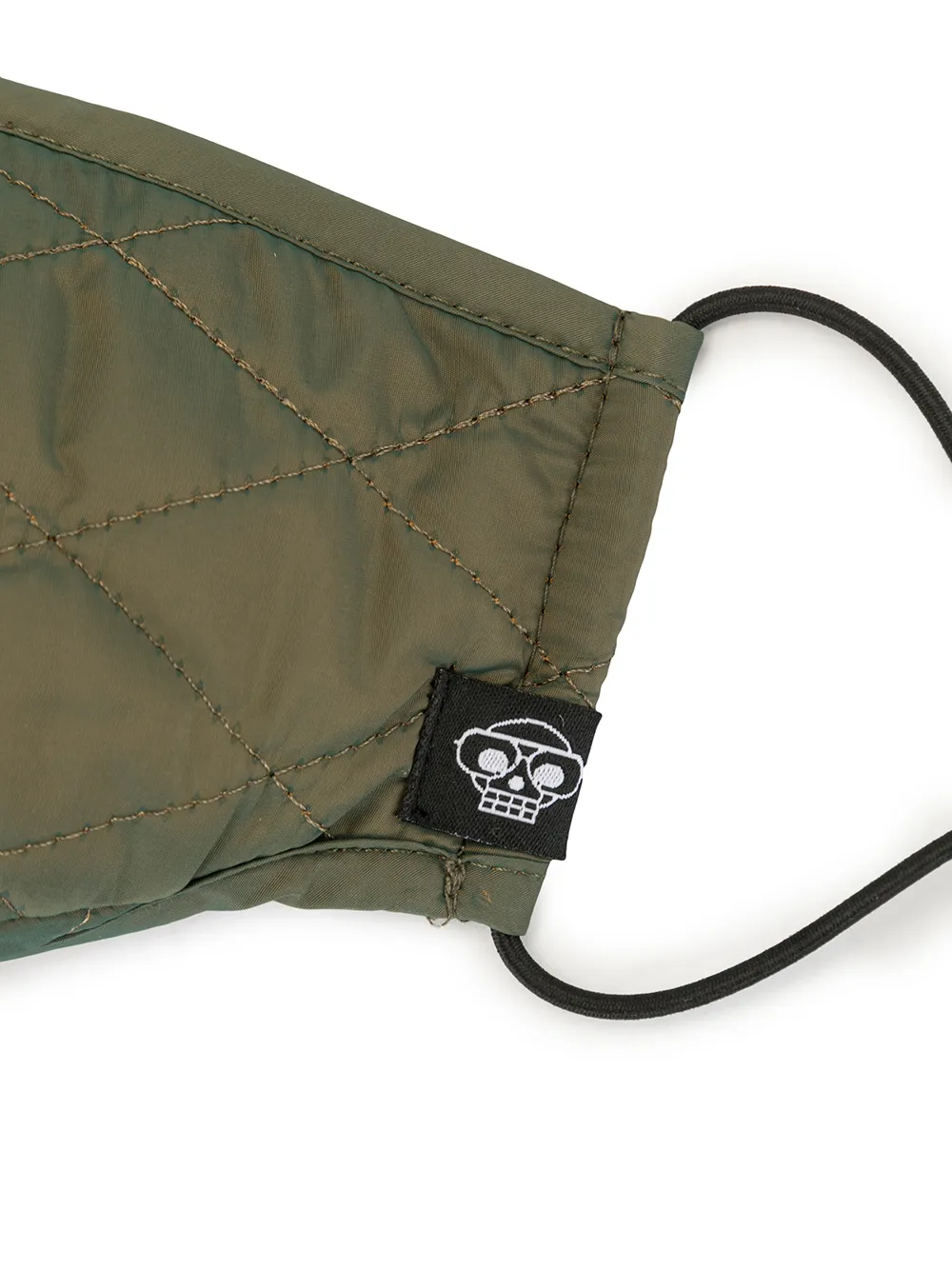 Mascherina trapuntata verde in nylon di MOSTLY HEARD RARELY SEEN. Modello con applicazione laterale con logo, fascia elasticizzata e dettaglio con cuciture.