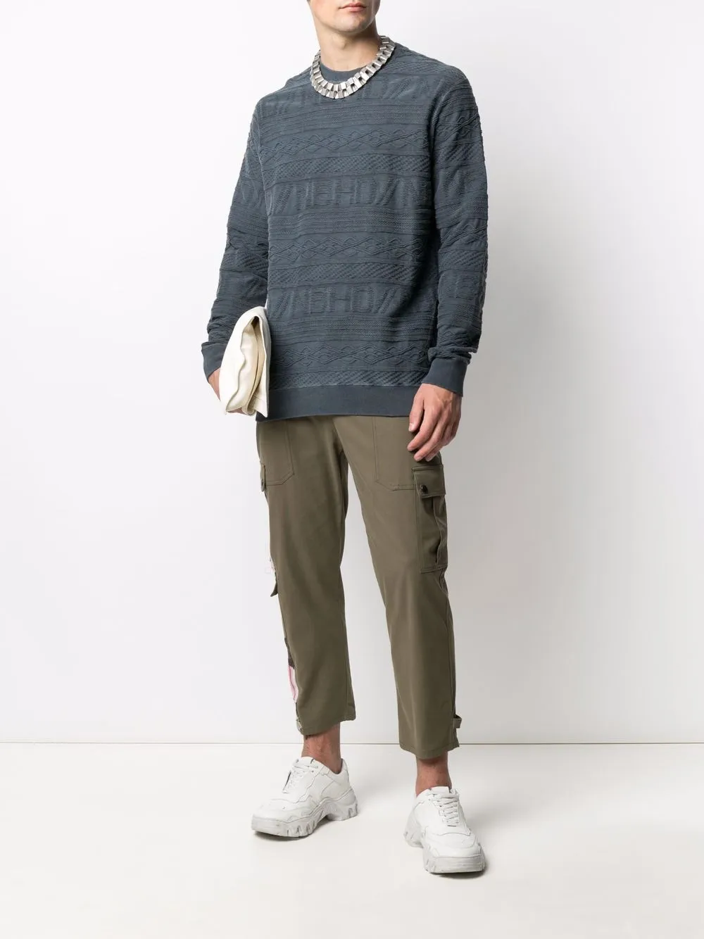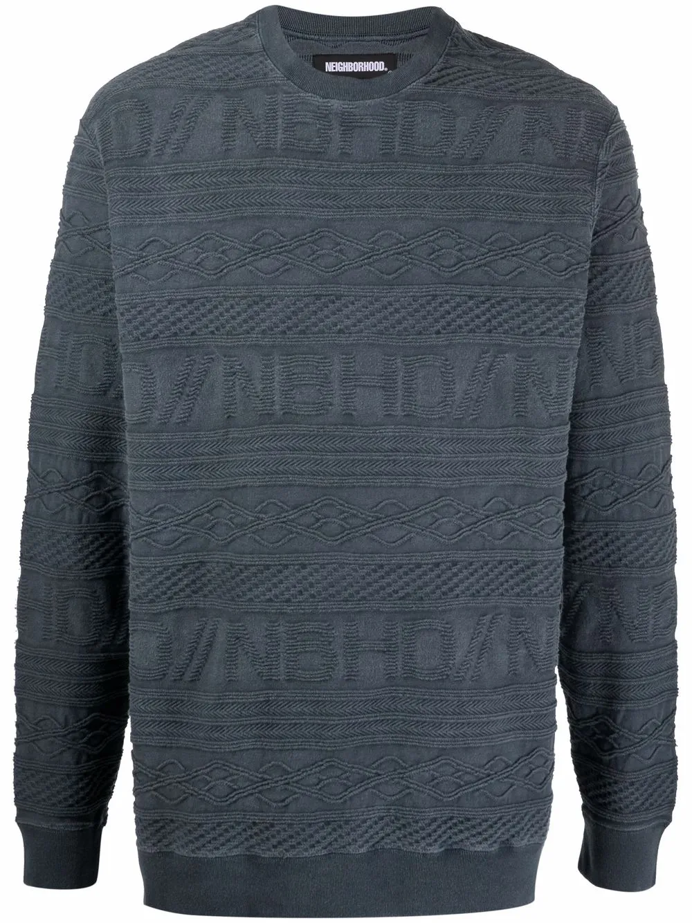 Motivo jacquard, girocollo, maniche lunghe, polsini a coste e orlo a coste. Materiale: cotone. Gli articoli unisex utilizzano taglie da uomo.