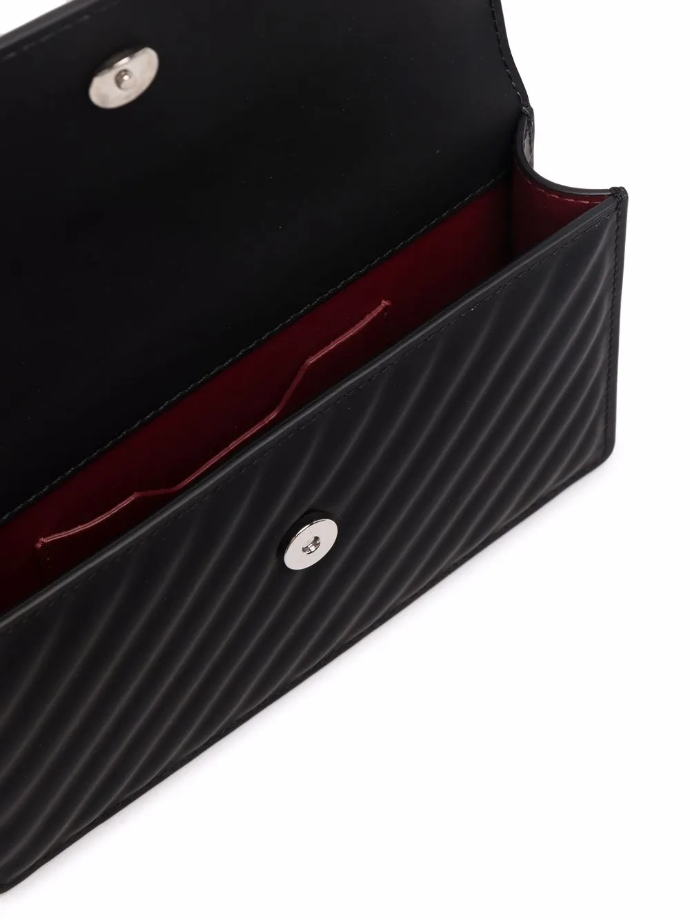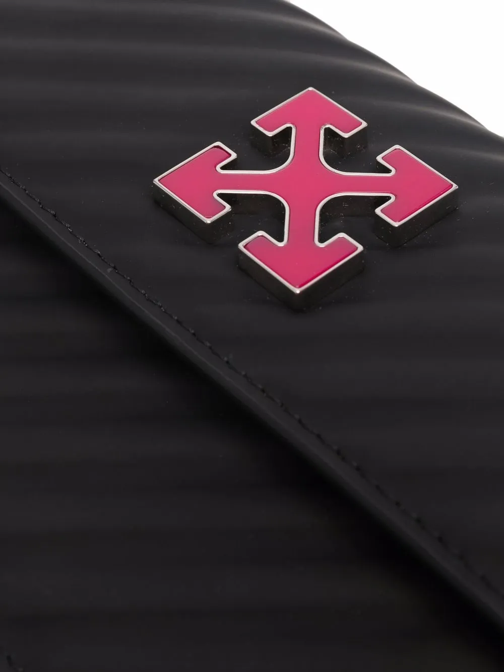 Caratteristico motivo Arrows, motivo a righe diagonali, placca con logo, passanti, fessura portacarta interna e battente nella parte superiore con chiusura magnetica. Materiale: pelle. Colore: nero.