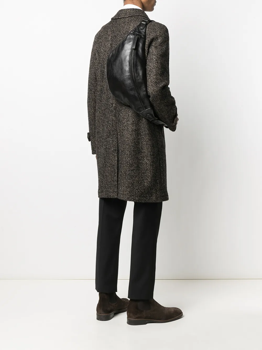 Fodera in seta, scomparto unico, chiusura superiore con zip e tracolla regolabile. Materiale: pelle di vitello. Colore: nero.