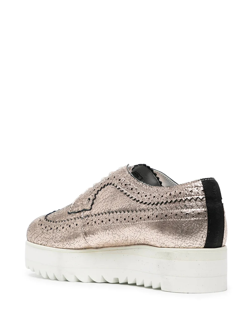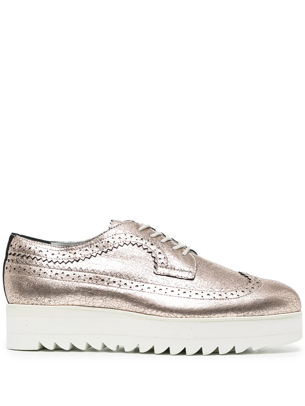 Effetto metallizzato, design traforato, punta tonda, chiusura frontale con lacci, chiusura frontale con lacci, plateau e suola in gomma antiscivolo. Materiale: pelle.
