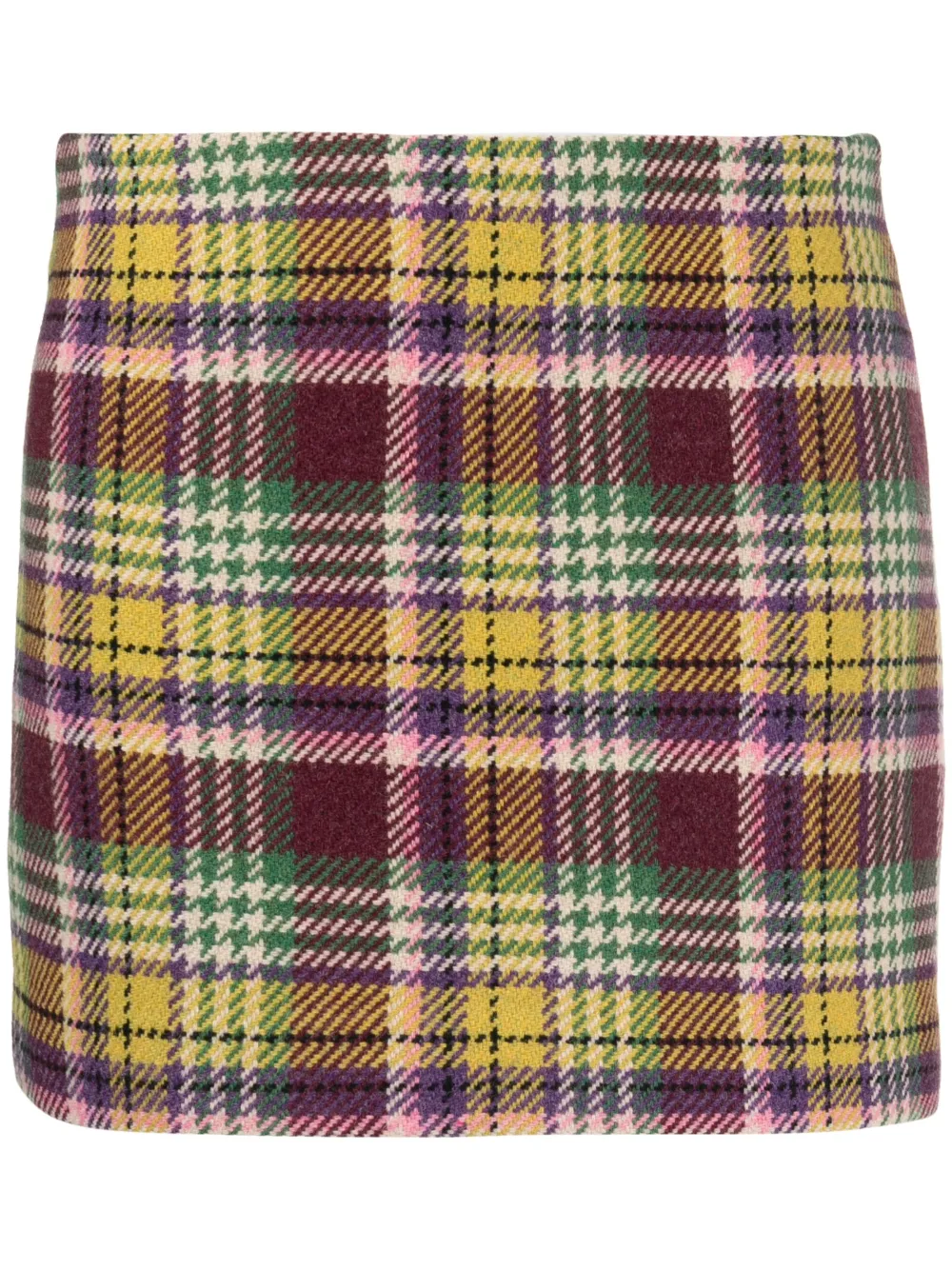 plaid wool-blend miniskirt from P.A.R.O.S.H. featuring sunflower yellow, grass green, dark red, wool blend, plaid check pattern, straight hem and thigh-length.