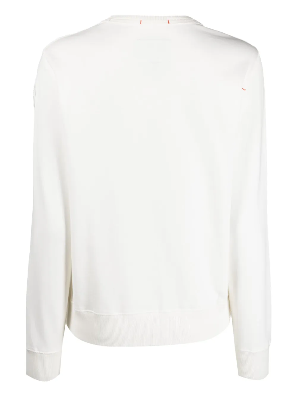 Bianco opaco, cotone, stampa con logo sul davanti, girocollo e maniche lunghe.