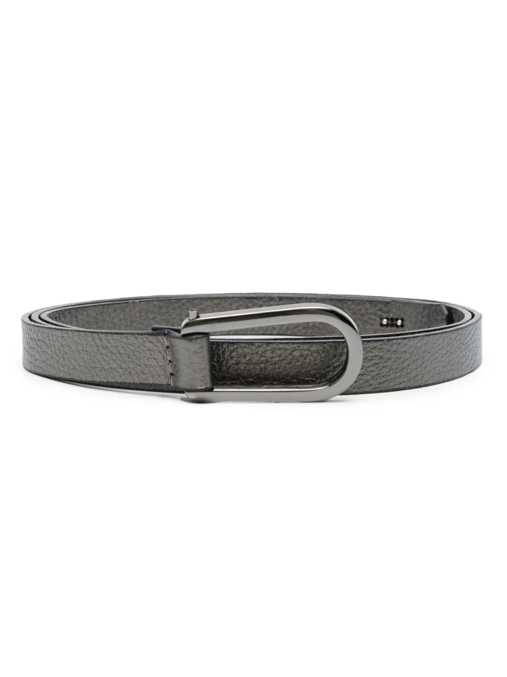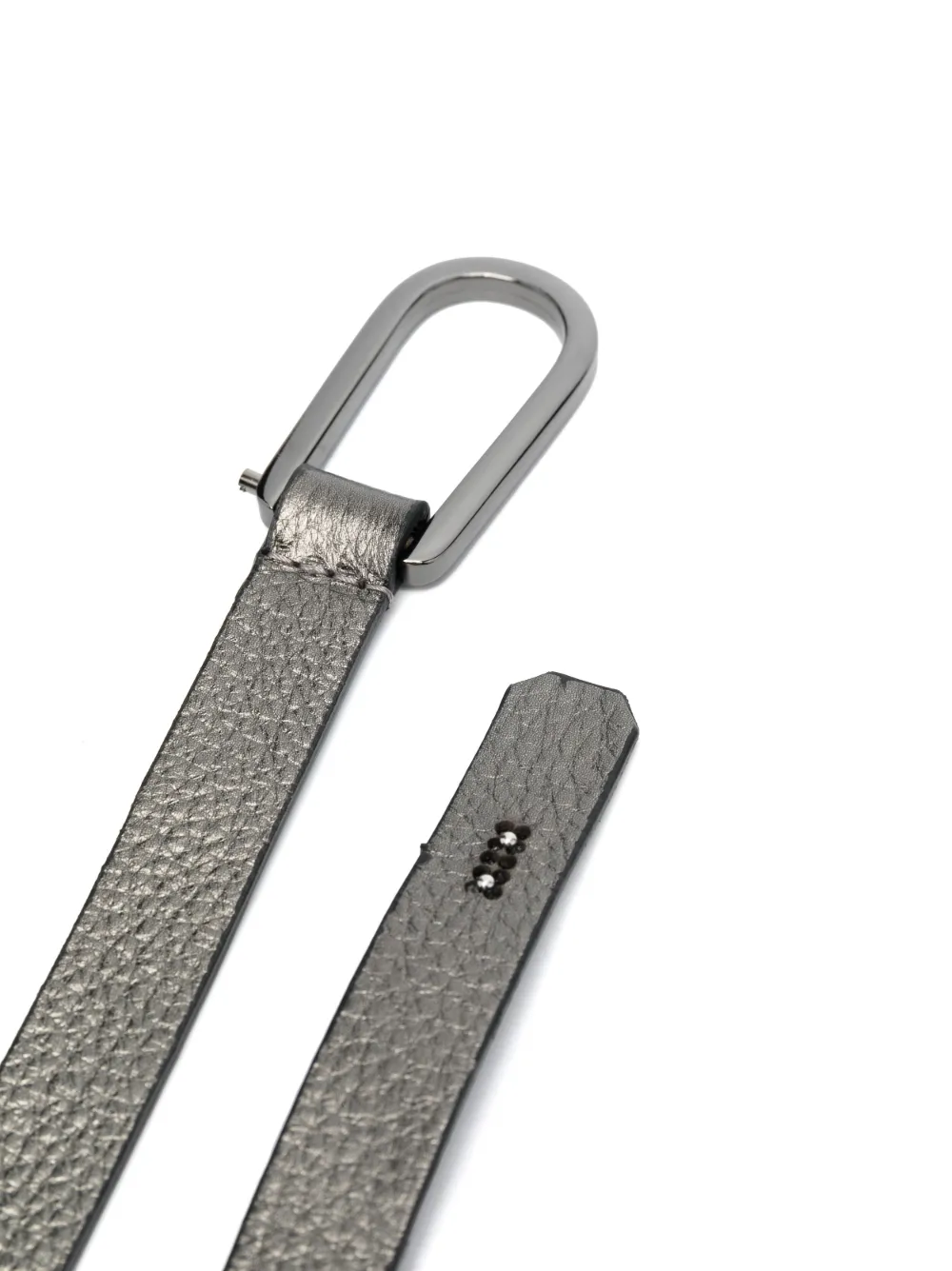 Verde, pelle di vitello, trama martellata, dettagli color argento, chiusura con fibbia e design regolabile.