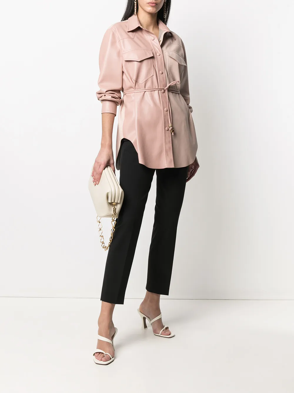 Design crop, taglio sartoriale, due tasche diagonali laterali e dettaglio con cuciture. Colore: nero.