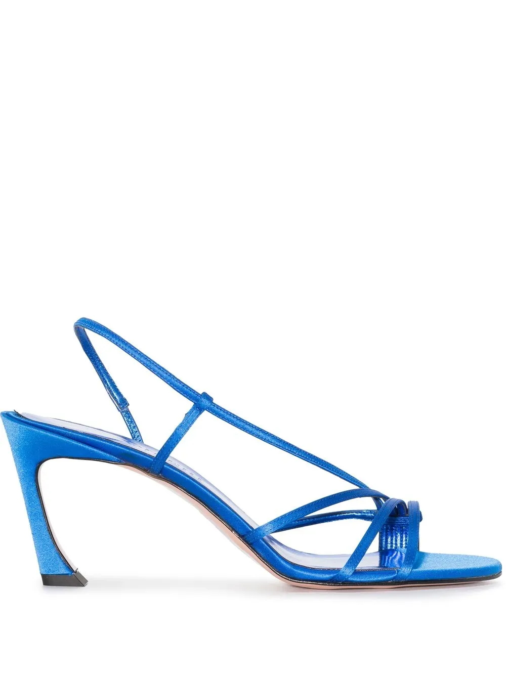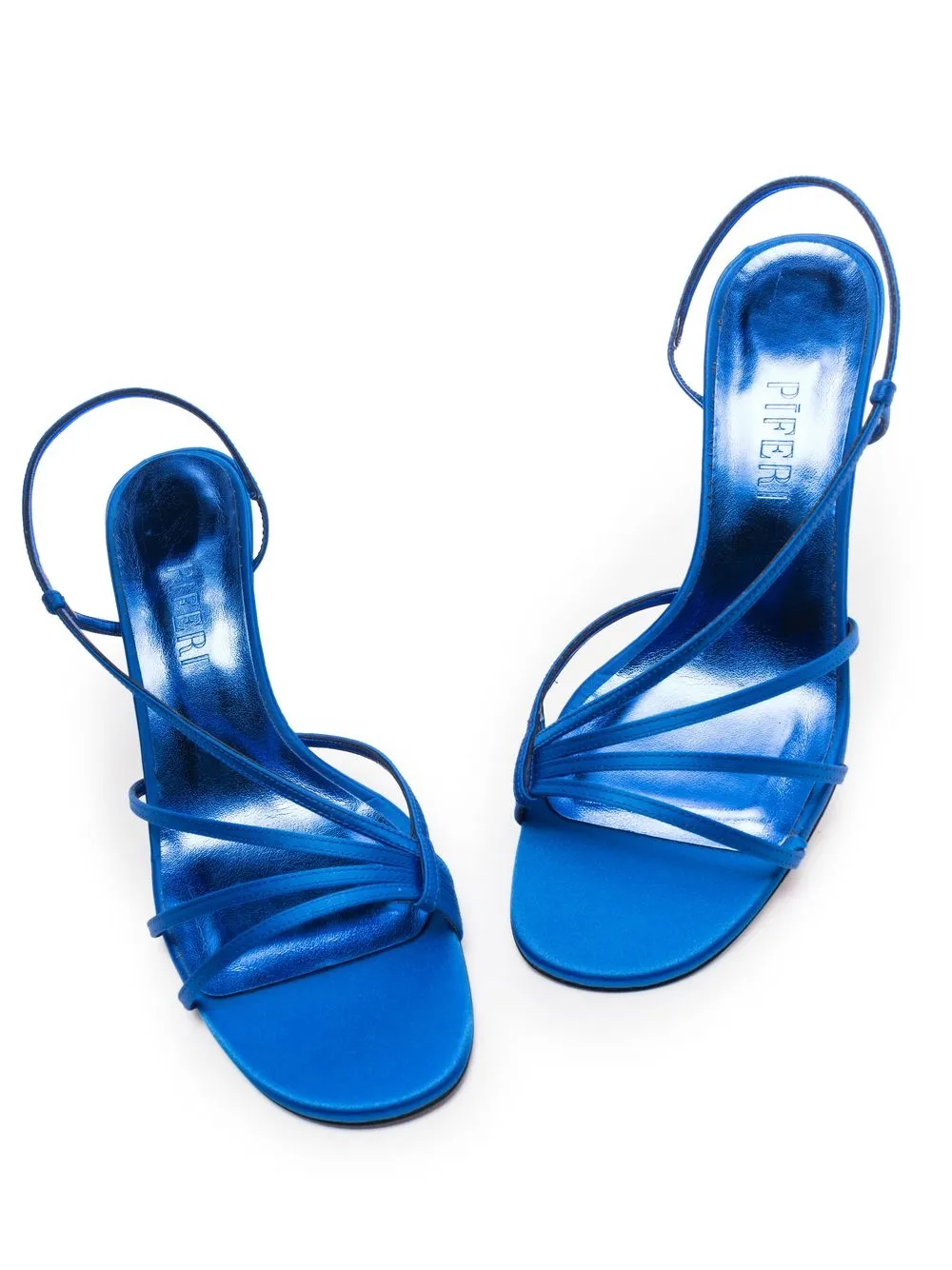 Sandali Athena con cinturino posteriore 70mm Piferi. Modello con blu iris, pelle, finitura satinata, cinturino posteriore, punta aperta e tacco alto a stiletto.CONSCIOUS: questo prodotto realizzato responsabilmente per gli animali proviene da un brand vegano con certificazione PETA. Acquistandolo, fai una scelta positiva per il benessere degli animali.
