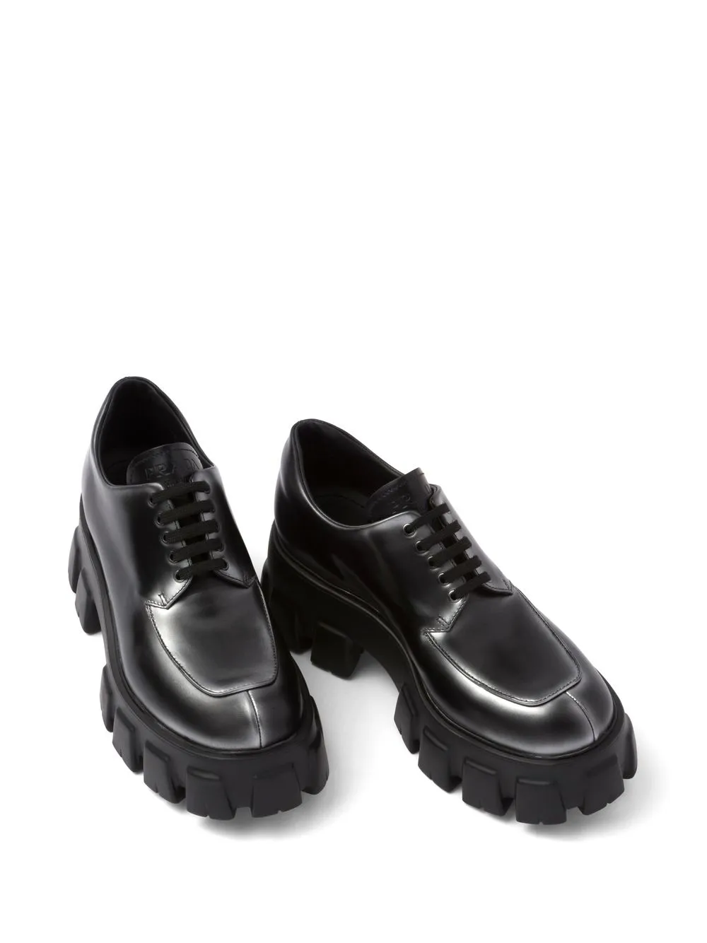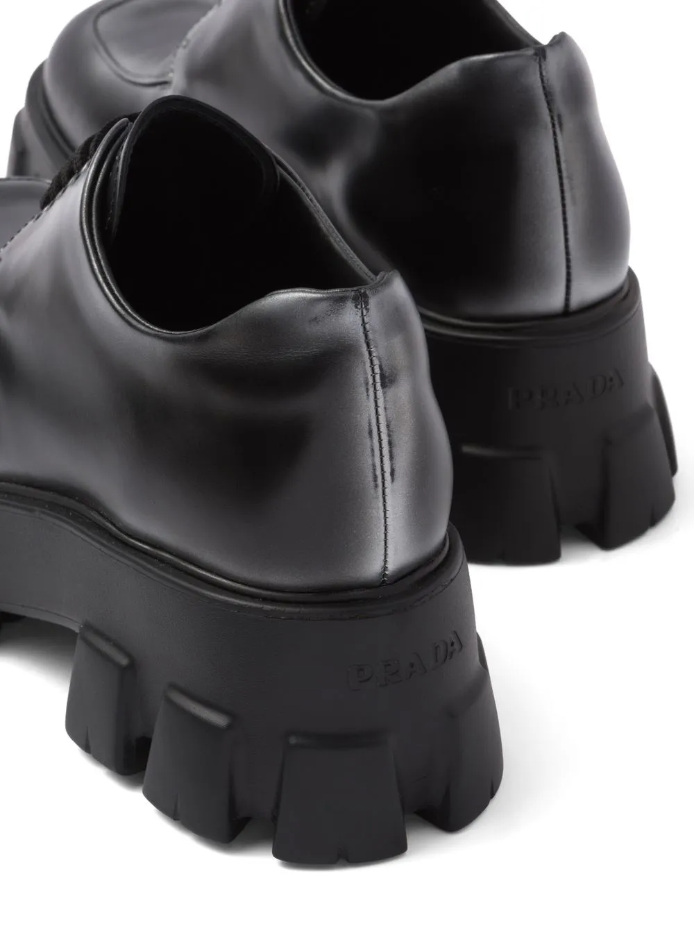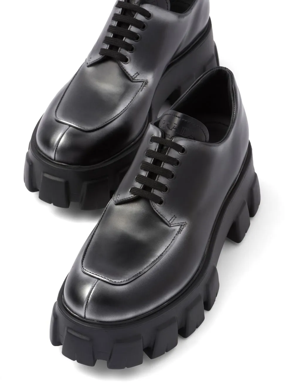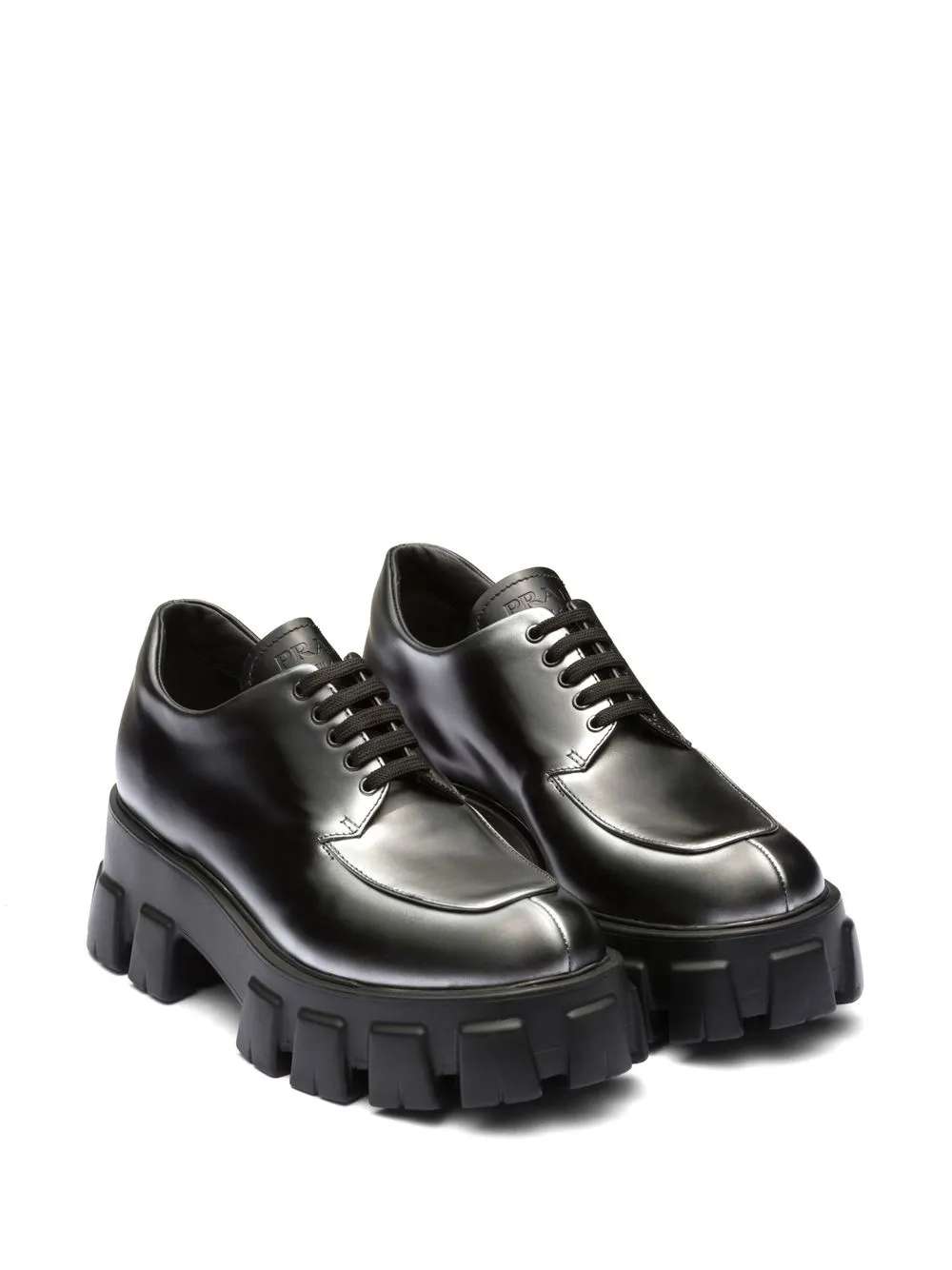 Nero, color argento, cuoio, finitura pettinata, effetto ombré, linguetta con logo impresso con goffratura incavata, punta tonda, chiusura frontale con lacci e suola chunky in gomma.