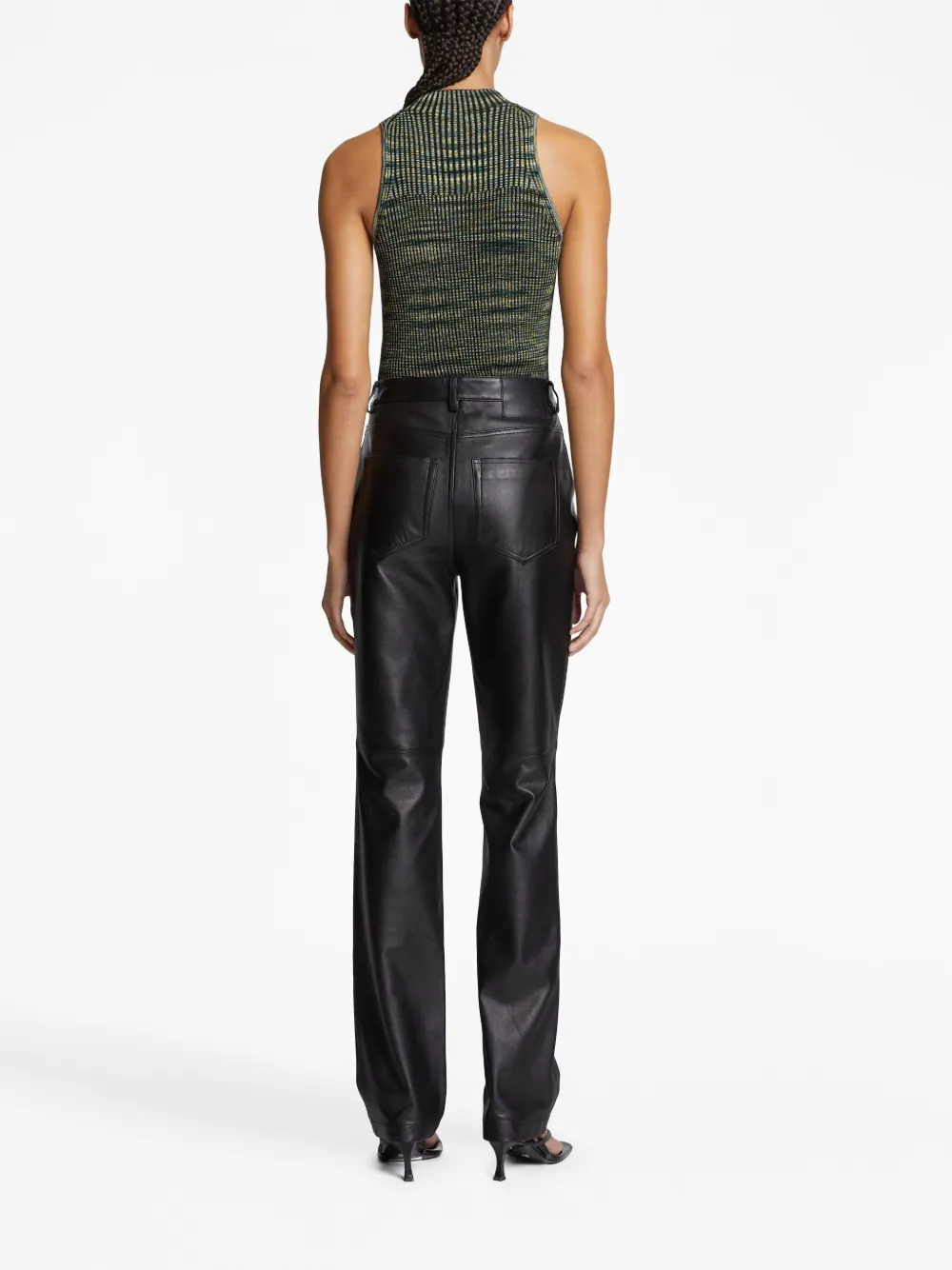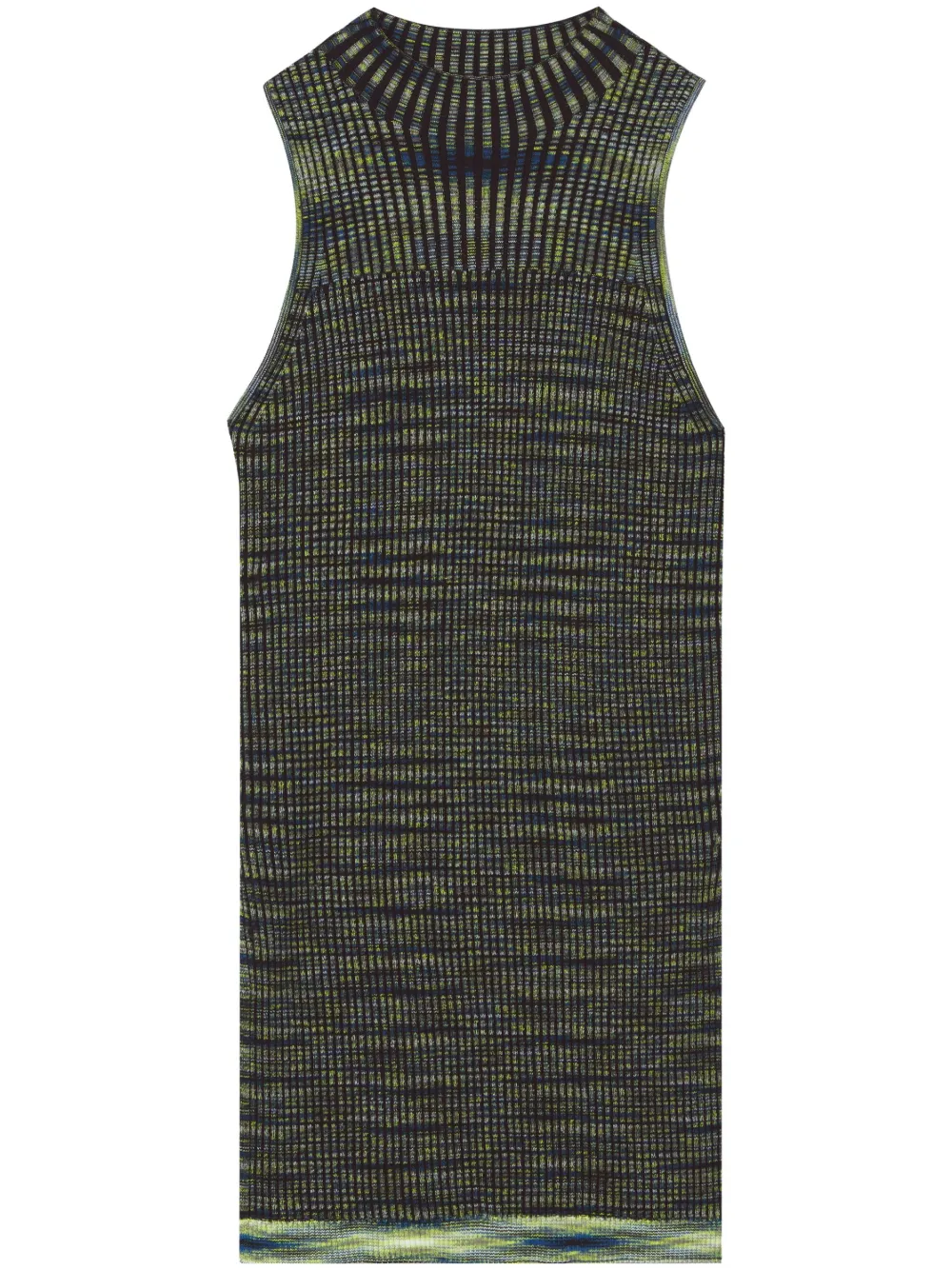 Space Dye ribbed-knit top from Proenza Schouler White Label featuring black/blue, lime green, cotton blend, ribbed knit, mock neck, sleeveless and straight hem.