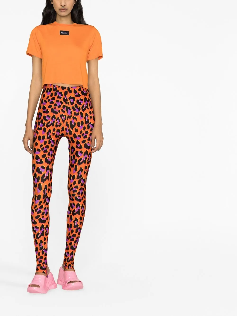 Arancione, design elasticizzato, vita alta e stampa leopardata.