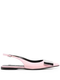 Rosa chiaro, pelle di vitello, logo inciso, soletta con logo, design a punta, cinturino alla caviglia con fibbia e suola piatta.