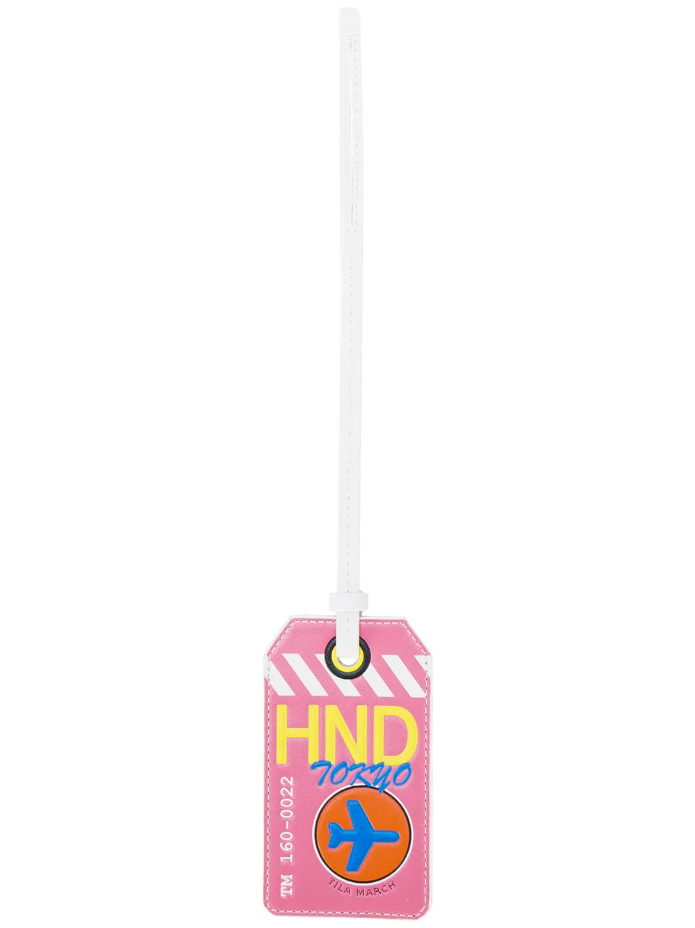 Etichetta di bagaglio in pelle rosa di Tila March.