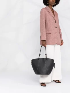 Turchese verde-azzurro, cuoio, stampa con logo sul davanti, stampa interna con logo, cuciture tono su tono, dettaglio trapuntato, battente nella parte superiore con chiusura magnetica, tracolla a catena, tasca interna con zip e scomparto interno diviso.