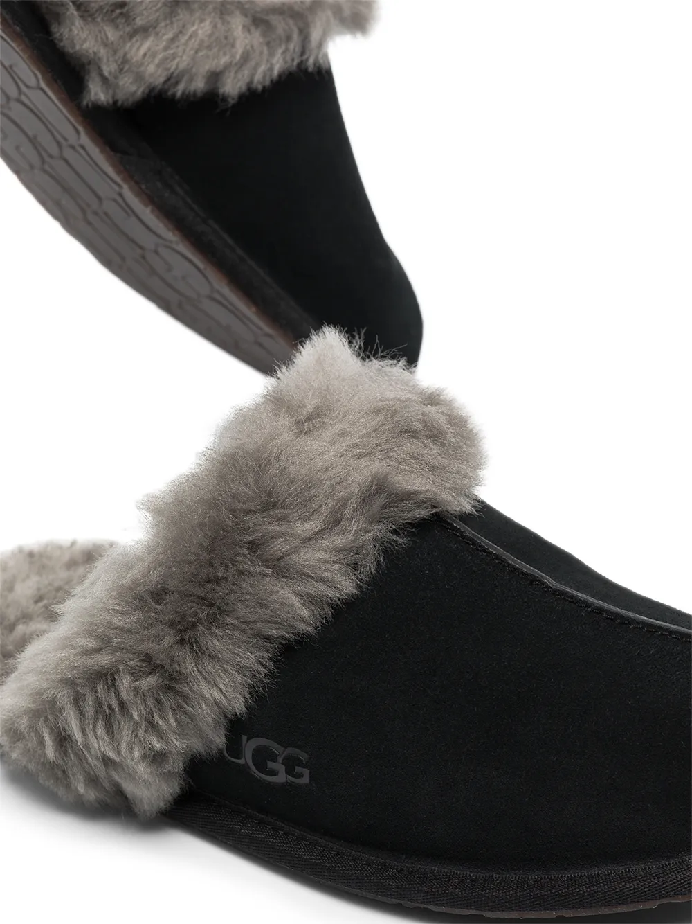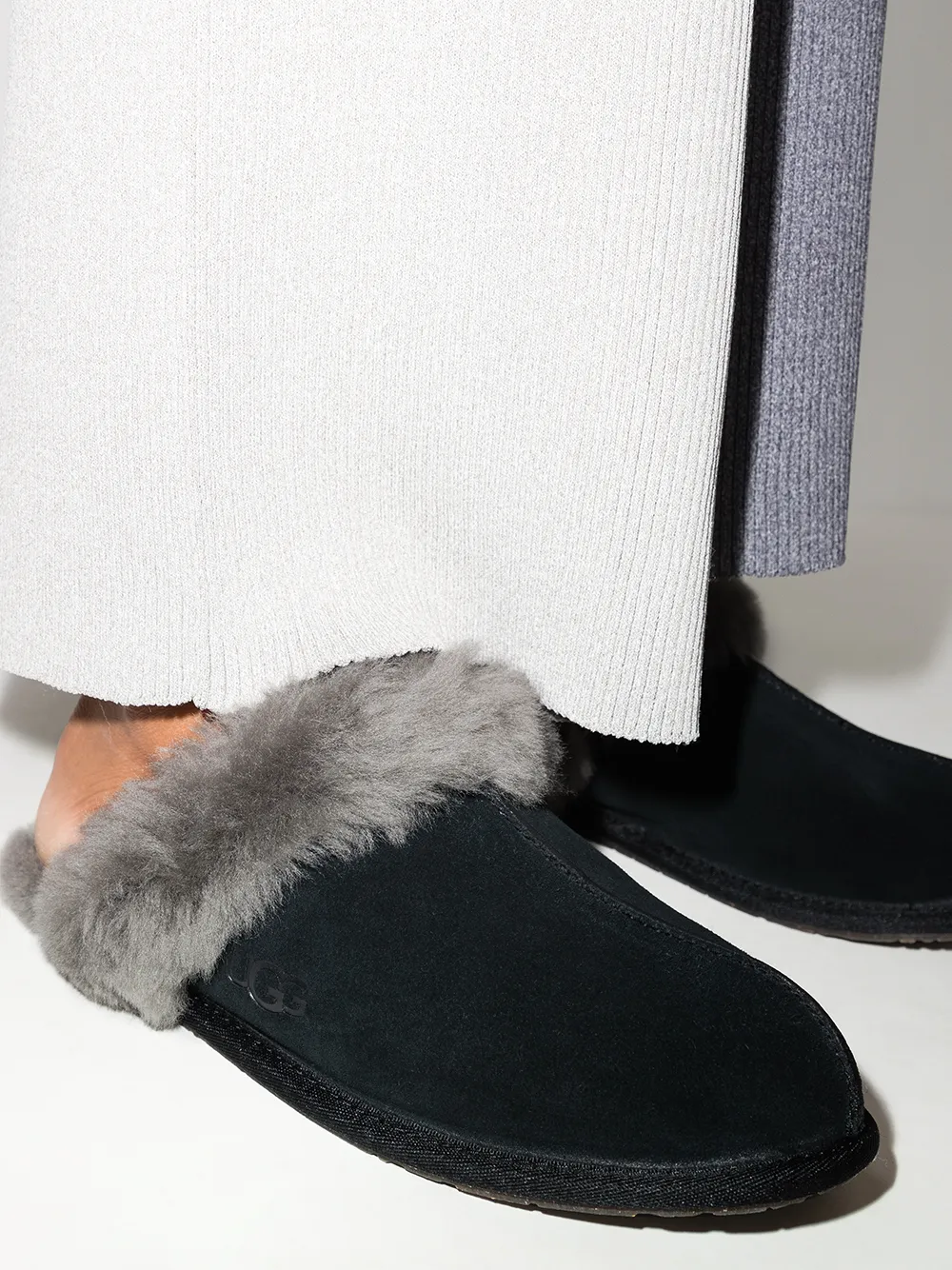 Suola piatta in gomma, punta tonda e fodera in Shearling. Materiale: pelle scamosciata.