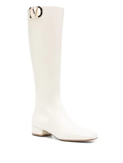 Arancione, pelle di vitello, dettaglio VLogo Signature, chiusura con pattina frontale, manico piatto e tracolla a catena.