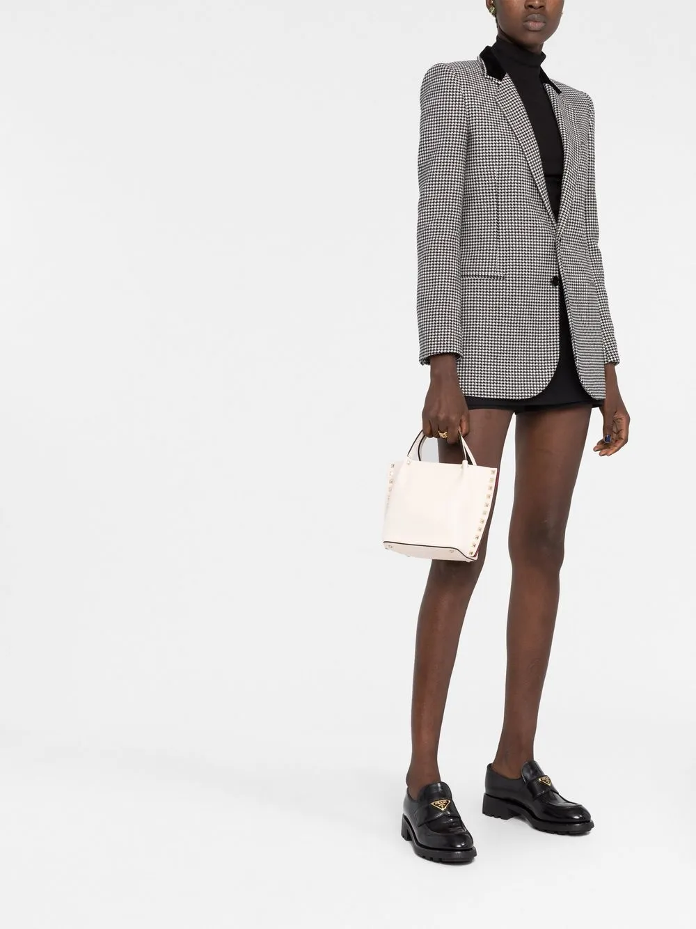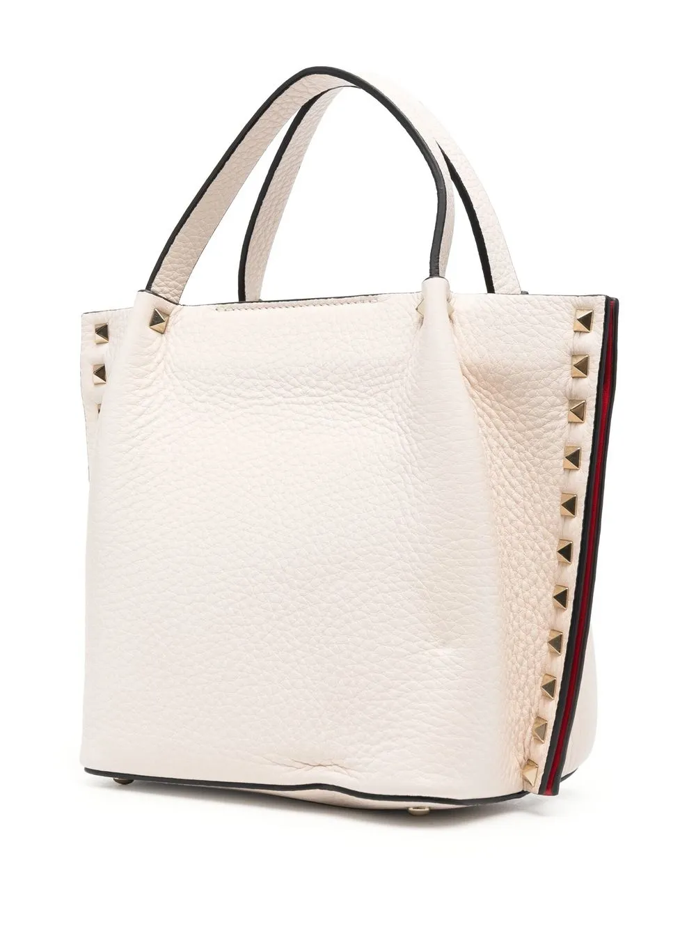 Dettagli color oro, caratteristico dettaglio Rockstud, scomparto unico, tasca interna a soffietto, stampa interna con logo, due manici e tracolla regolabile e rimovibile.