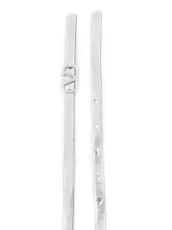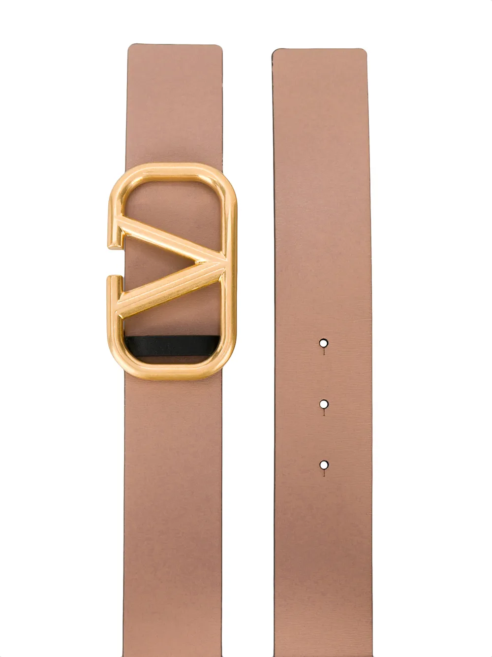 Cintura con fibbia in pelle di Valentino Garavani. Modello con fibbia con logo, componenti metalliche color oro e vestibilità regolabile.
