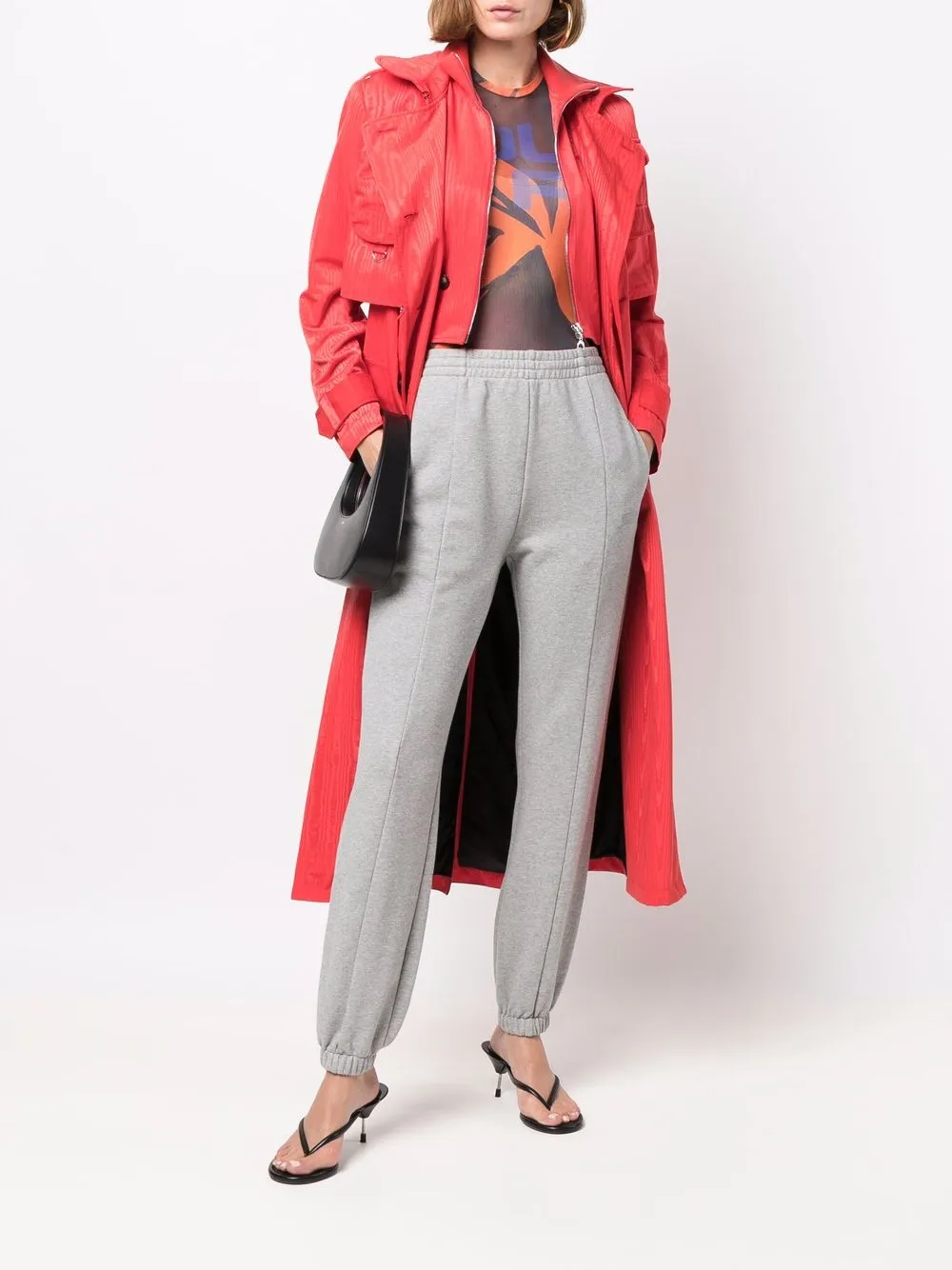 Vita elasticizzata, logo laterale inciso, taglio straight e orli alle caviglie elasticizzati. Materiale: misto cotone.