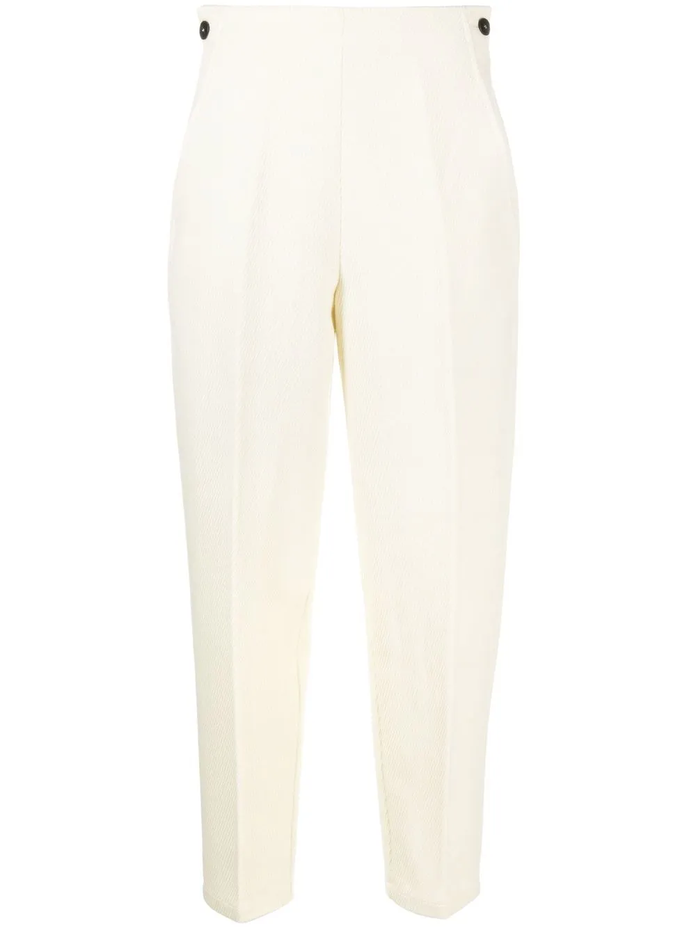 Bianco crema, cotone, design lavorato a maglia, chiusura a bottoni e taglio crop.