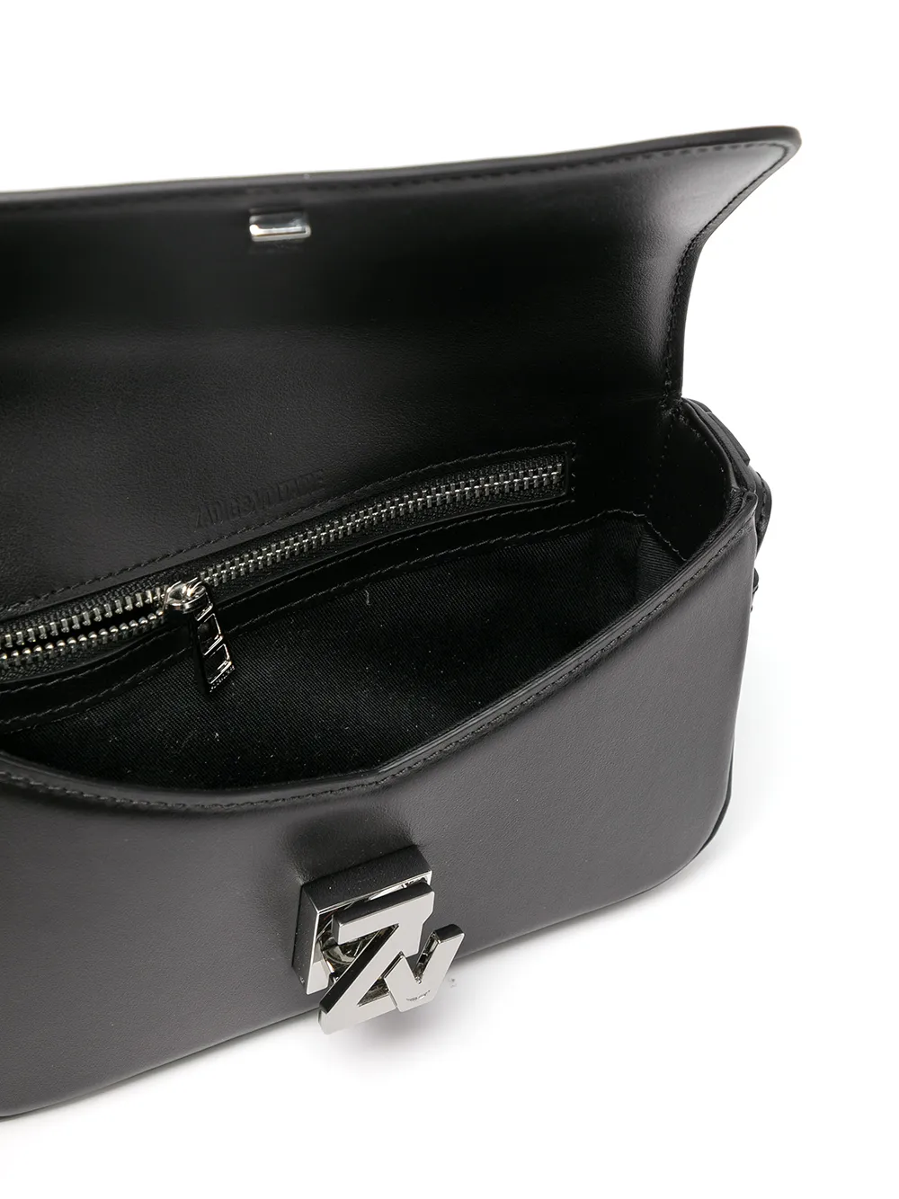 Placca con logo, pattina nella parte superiore, scomparto unico e design con fascia singola.